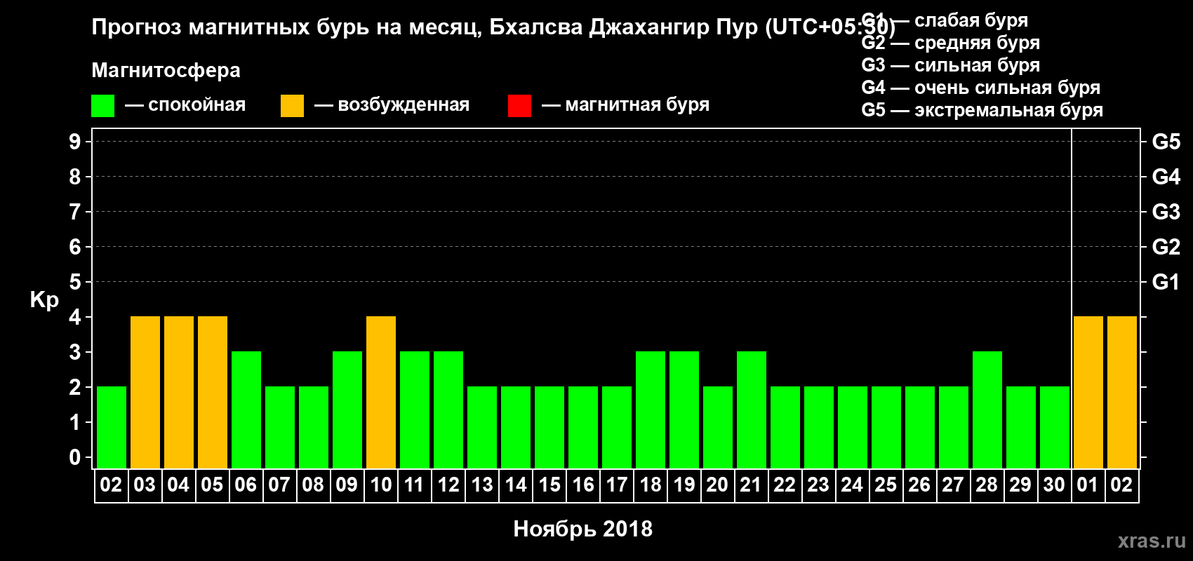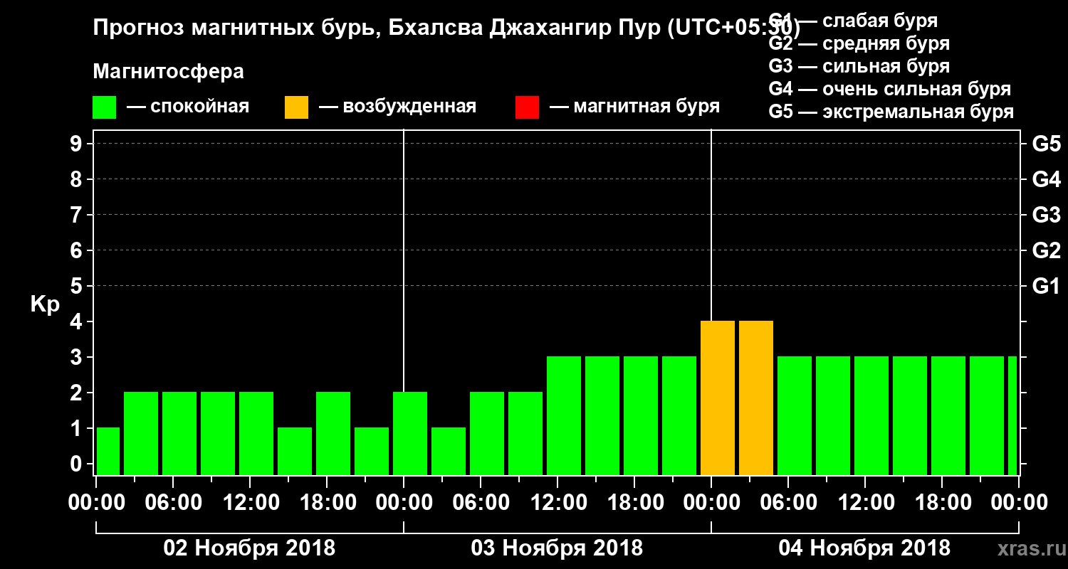 Прогноз магнитных бурь в Бхалсва Джахангир Пуре — 2 ноября 2018 года