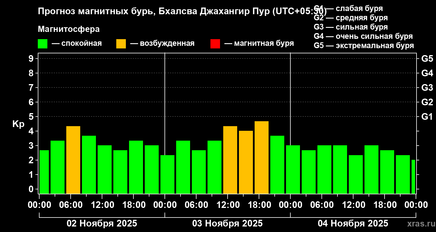 Прогноз магнитных бурь в Бхалсва Джахангир Пуре — 2 ноября 2025 года
