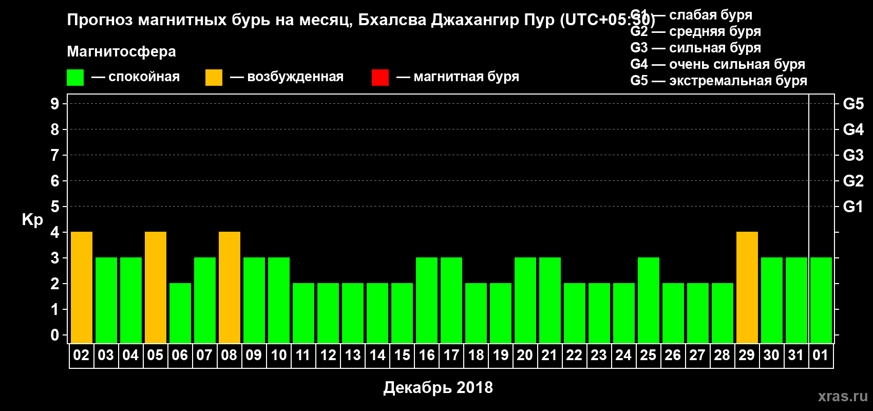Прогноз магнитных бурь в Бхалсва Джахангир Пуре — 2 декабря 2018 года