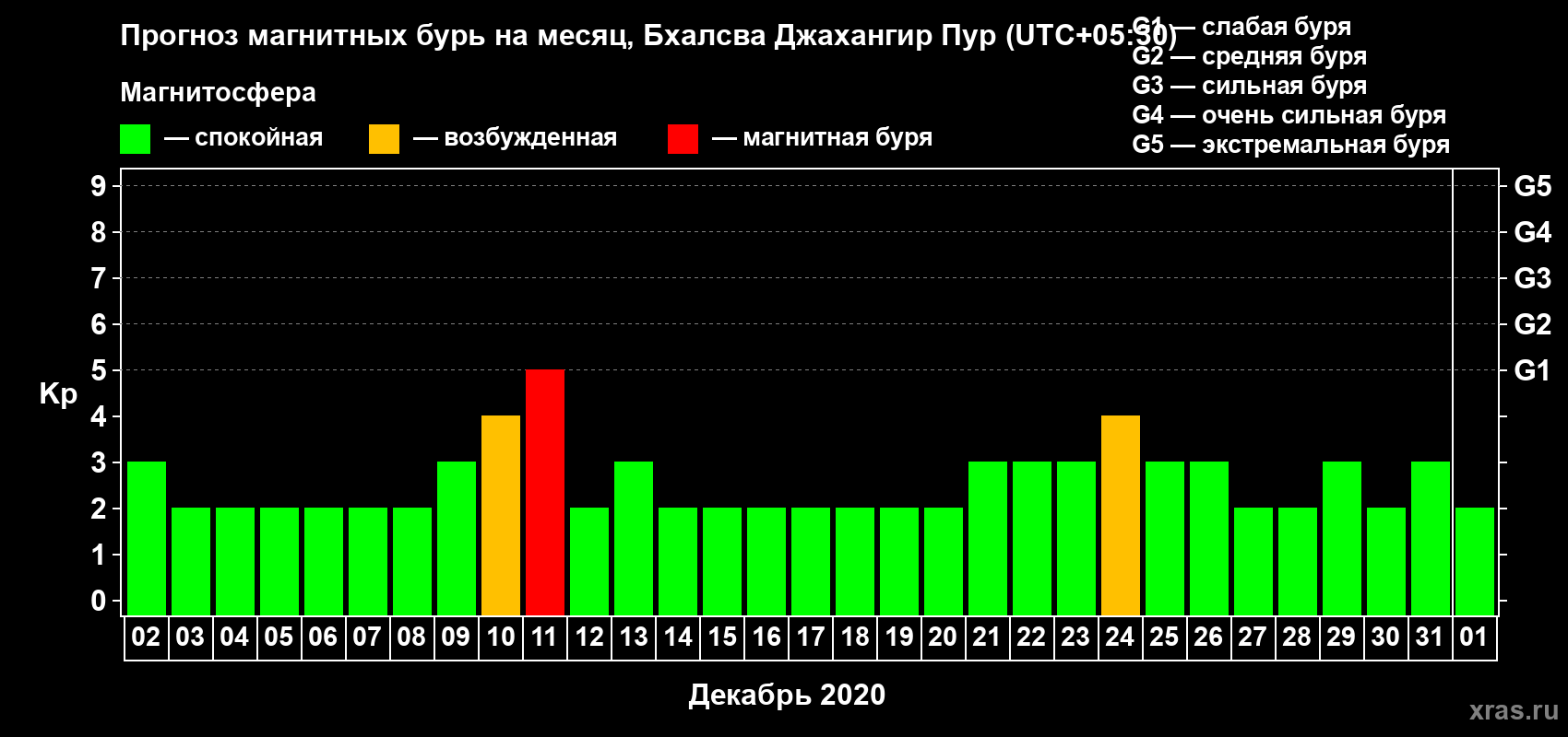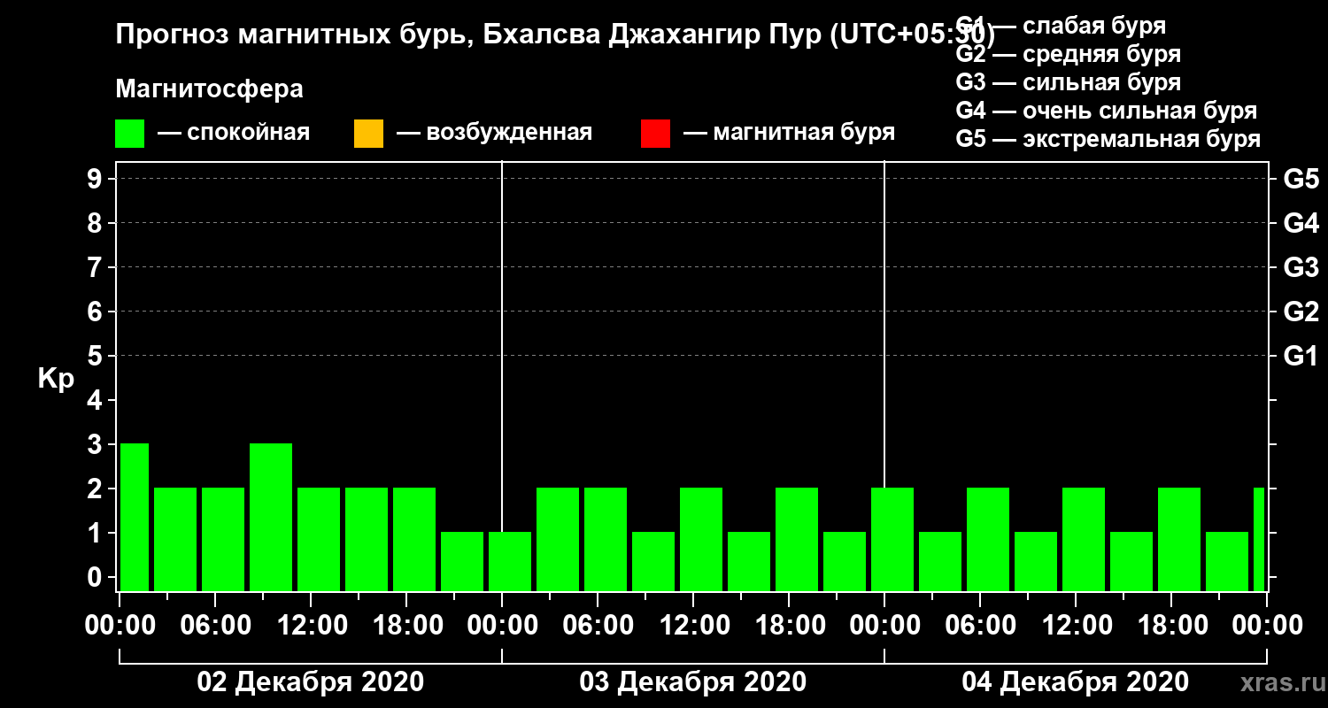Прогноз магнитных бурь в Бхалсва Джахангир Пуре — 2 декабря 2020 года