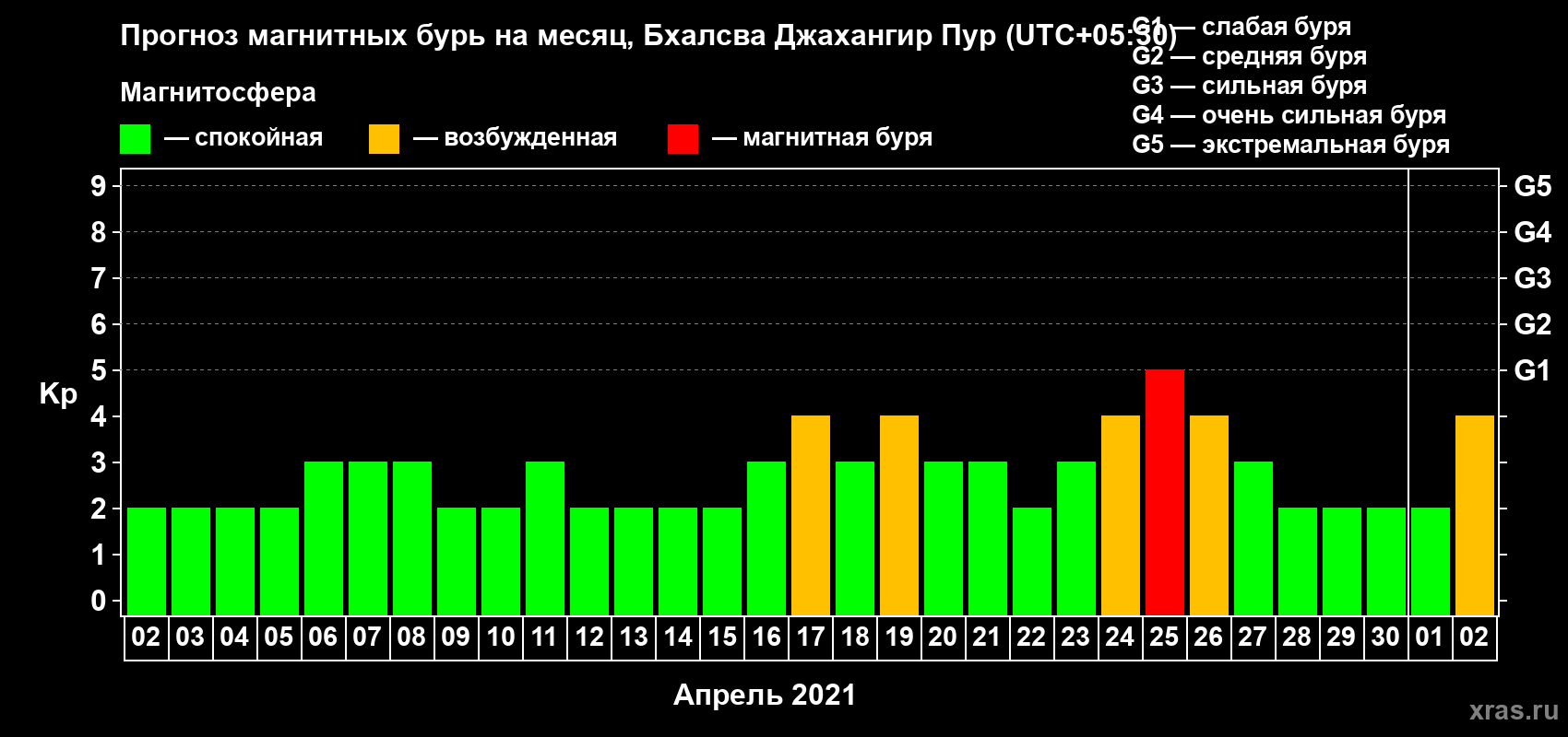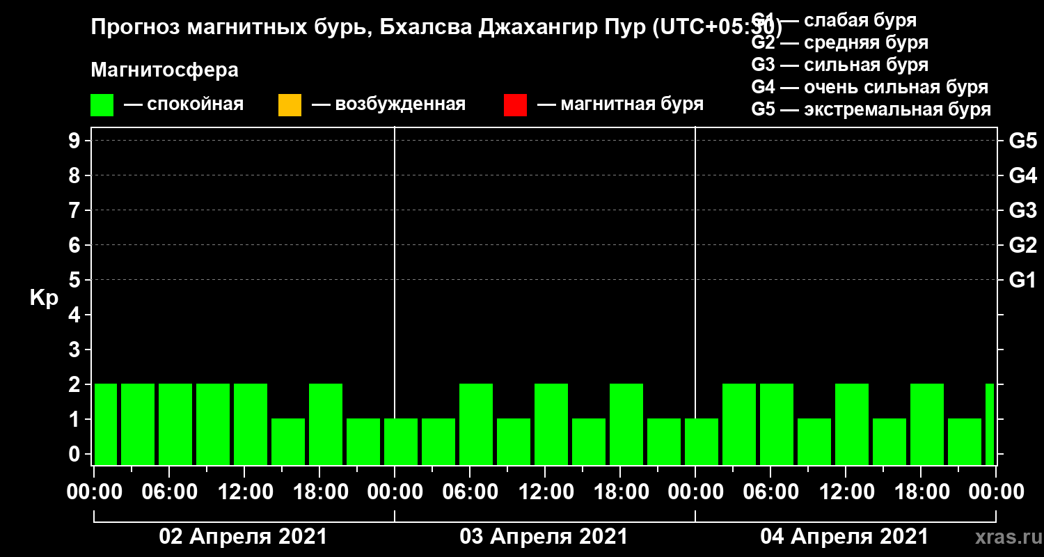 Прогноз магнитных бурь в Бхалсва Джахангир Пуре — 2 апреля 2021 года
