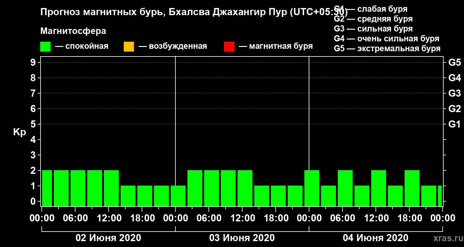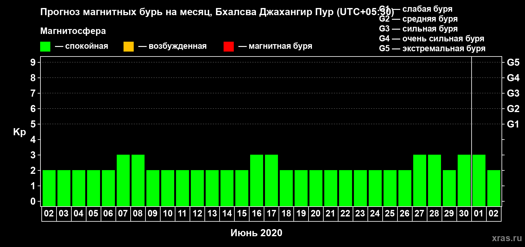 Прогноз магнитных бурь в Бхалсва Джахангир Пуре — 2 июня 2020 года