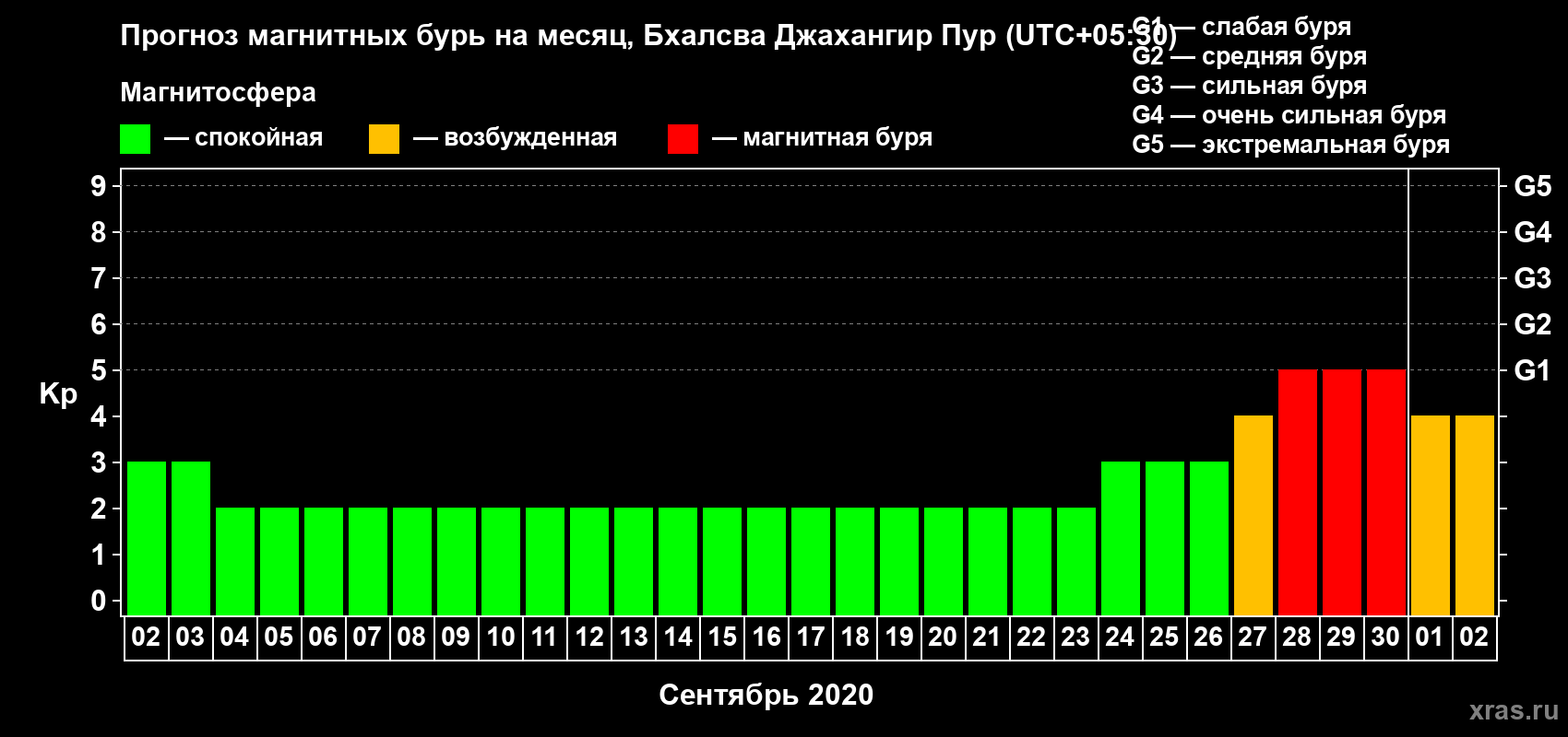 Прогноз магнитных бурь в Бхалсва Джахангир Пуре — 2 сентября 2020 года