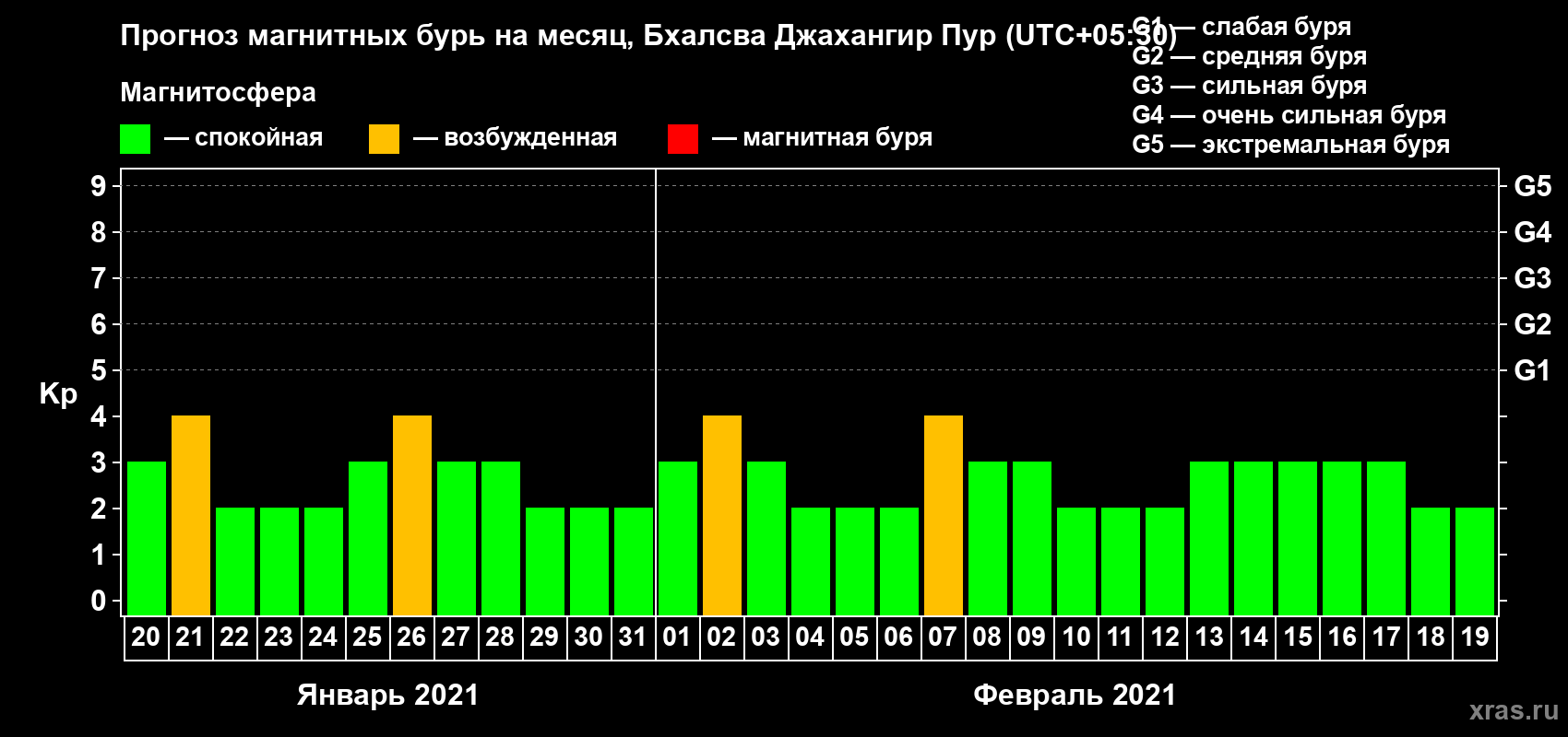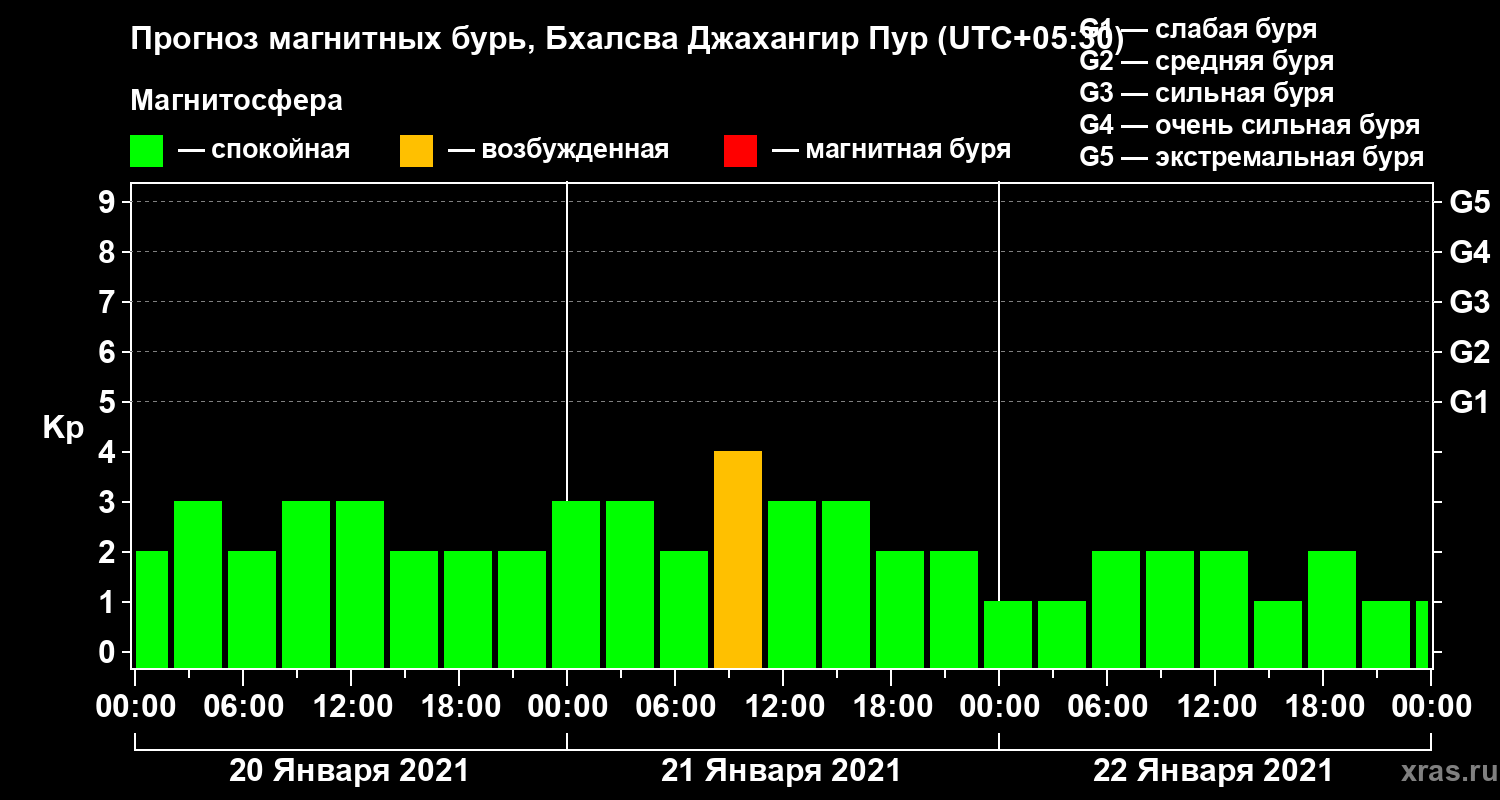 Прогноз магнитных бурь в Бхалсва Джахангир Пуре — 20 января 2021 года