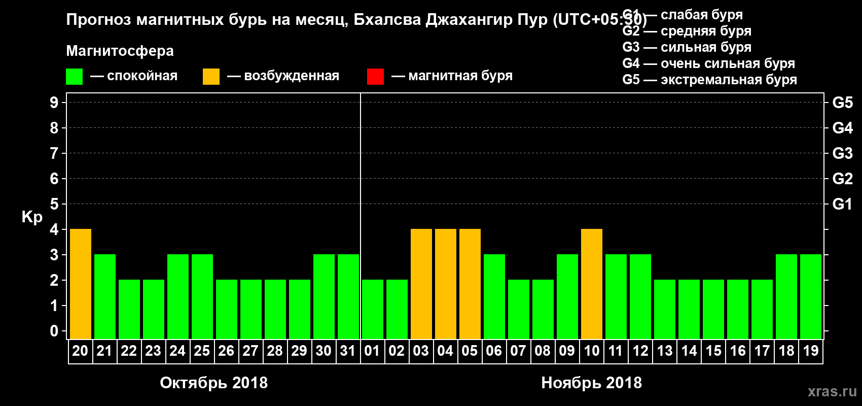 Прогноз магнитных бурь в Бхалсва Джахангир Пуре — 20 октября 2018 года