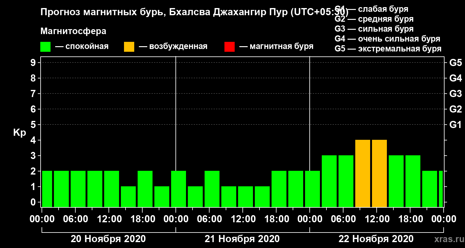 Прогноз магнитных бурь в Бхалсва Джахангир Пуре — 20 ноября 2020 года