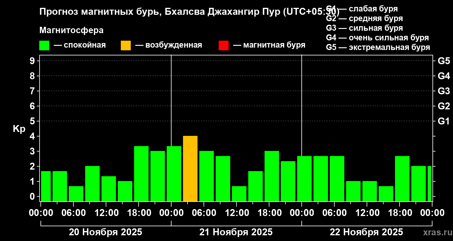 Прогноз магнитных бурь в Бхалсва Джахангир Пуре — 20 ноября 2025 года