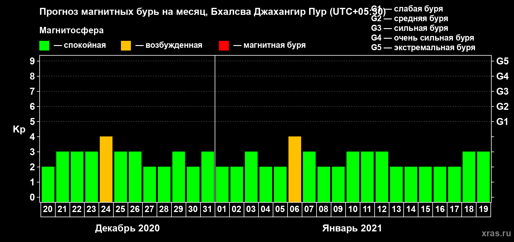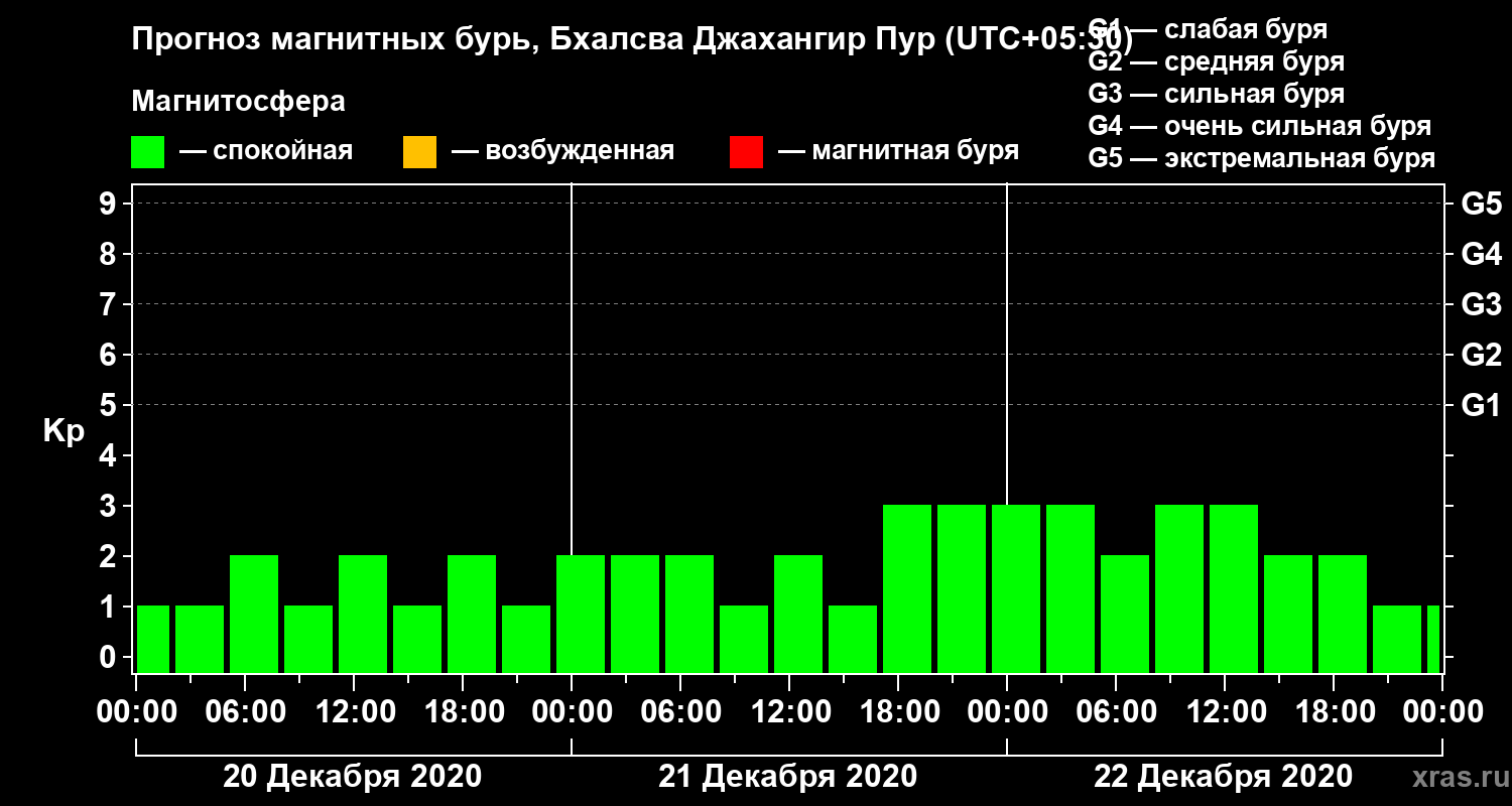 Прогноз магнитных бурь в Бхалсва Джахангир Пуре — 20 декабря 2020 года