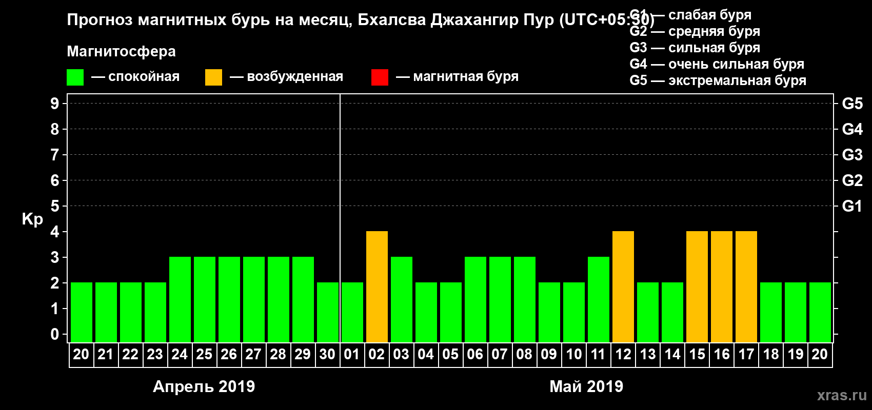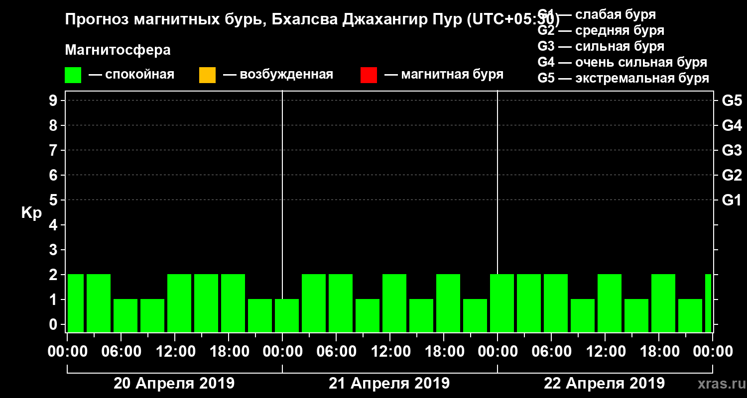 Прогноз магнитных бурь в Бхалсва Джахангир Пуре — 20 апреля 2019 года