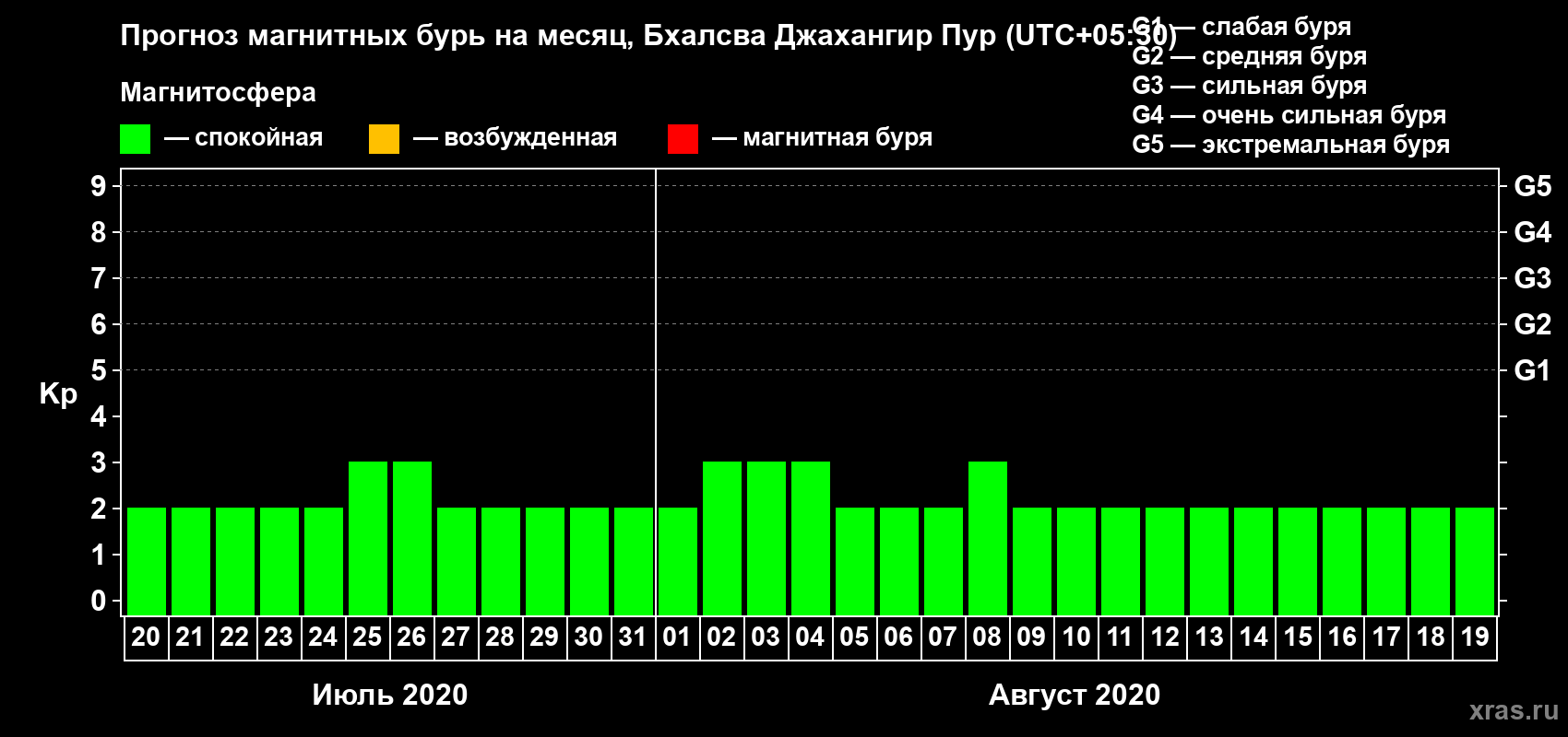 Прогноз магнитных бурь в Бхалсва Джахангир Пуре — 20 июля 2020 года