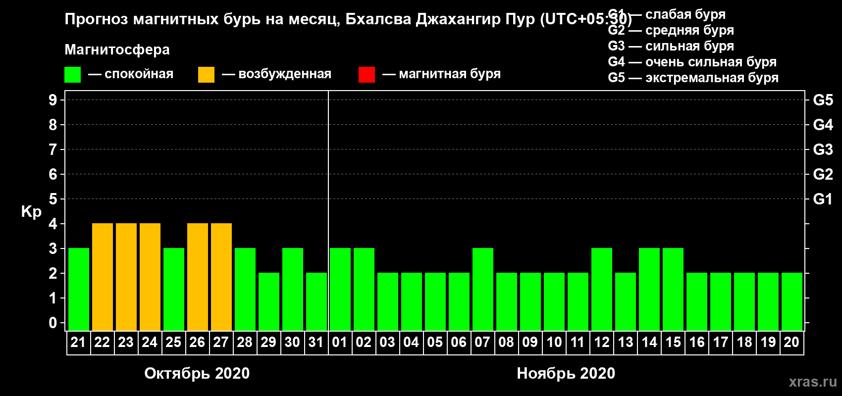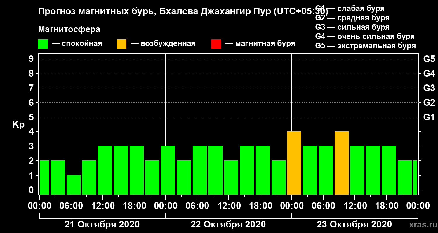 Прогноз магнитных бурь в Бхалсва Джахангир Пуре — 21 октября 2020 года