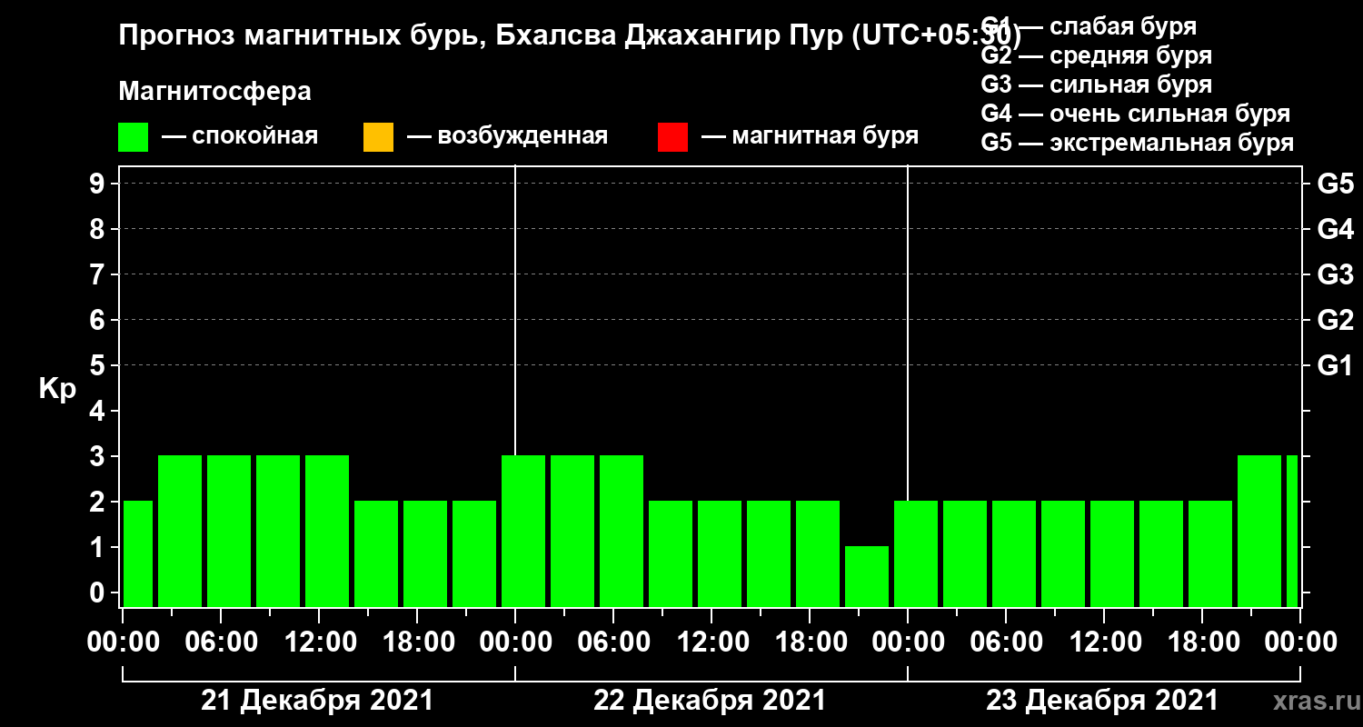 Прогноз магнитных бурь в Бхалсва Джахангир Пуре — 21 декабря 2021 года