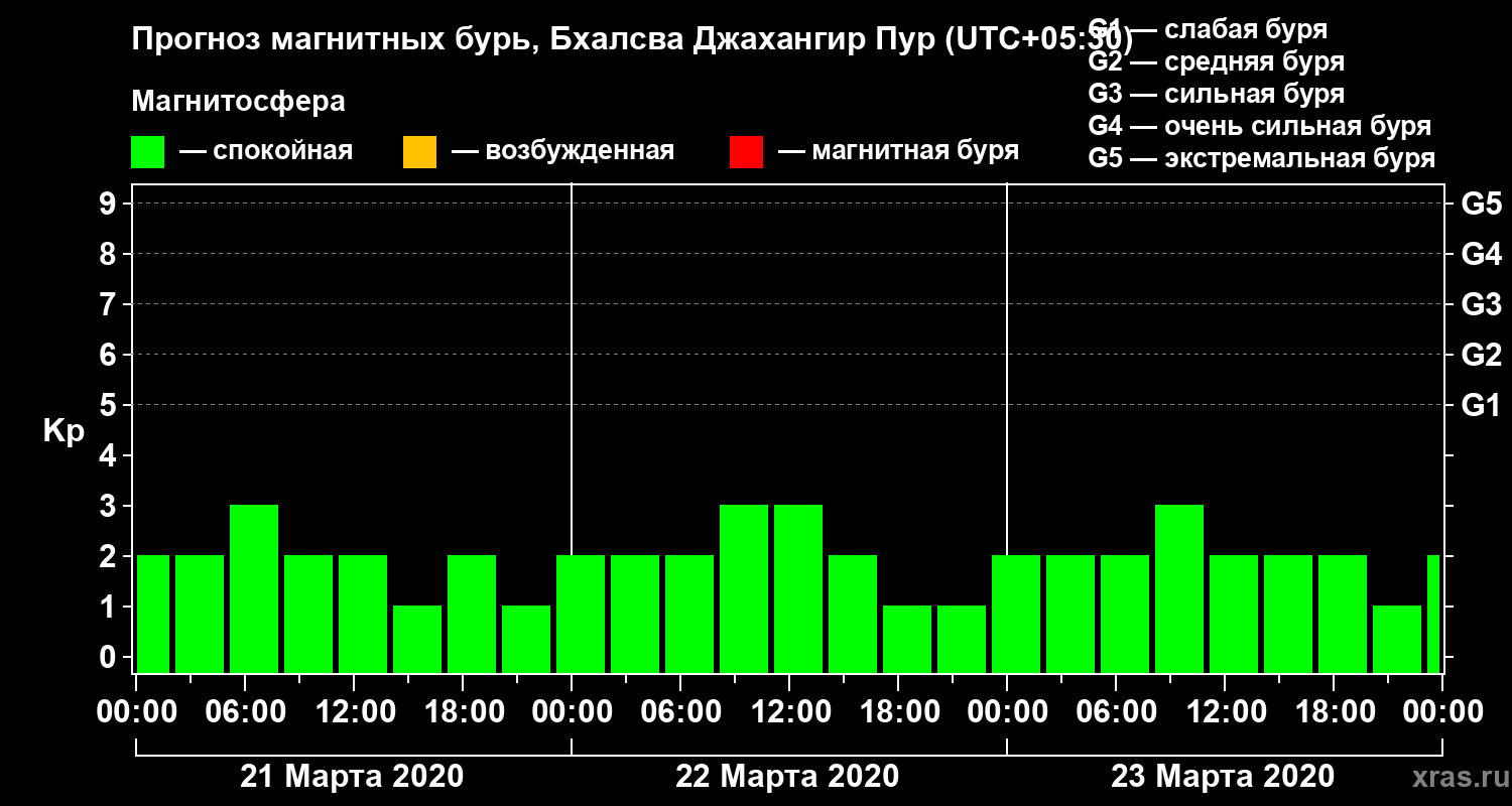 Прогноз магнитных бурь в Бхалсва Джахангир Пуре — 21 марта 2020 года
