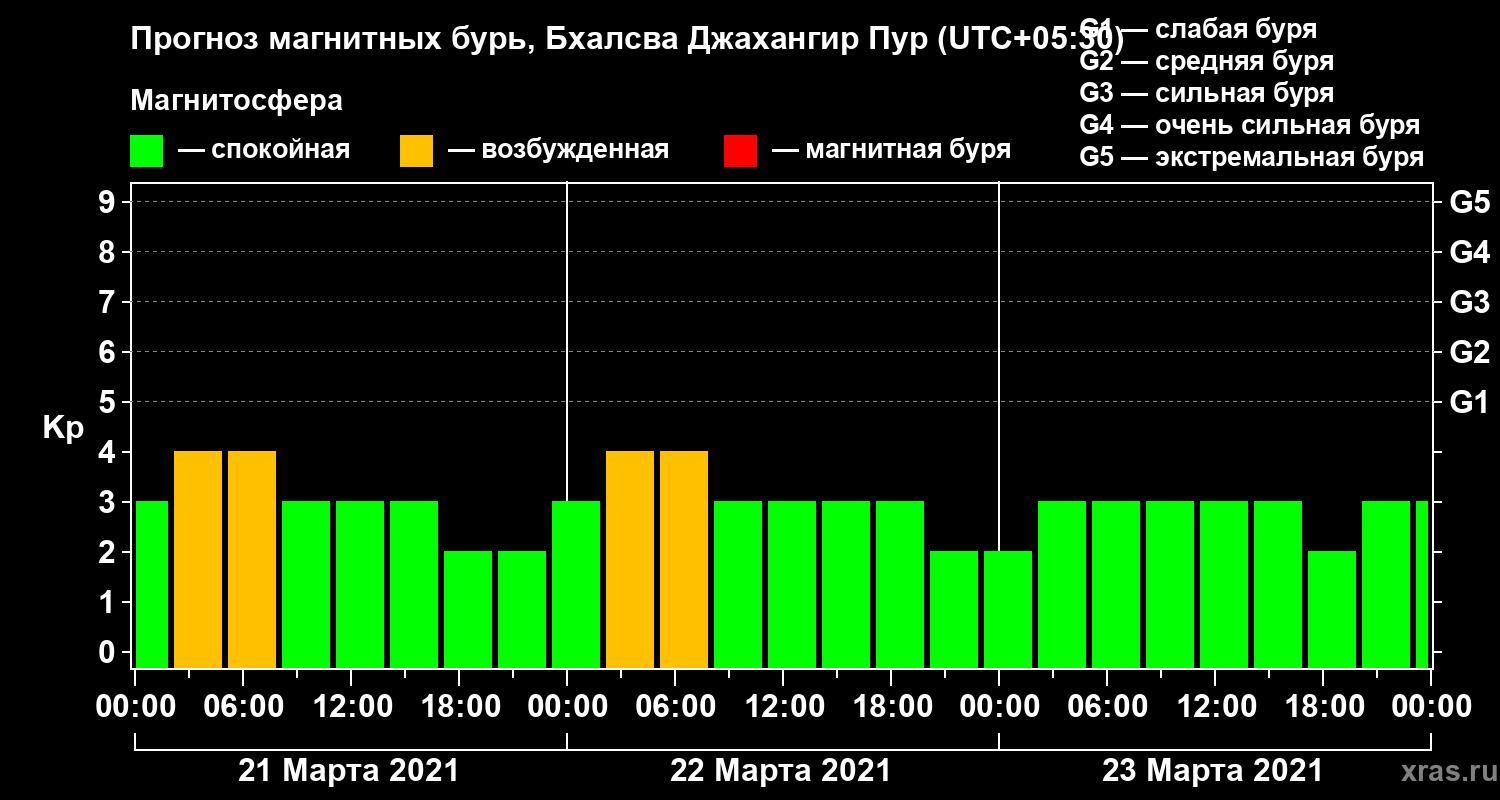 Прогноз магнитных бурь в Бхалсва Джахангир Пуре — 21 марта 2021 года