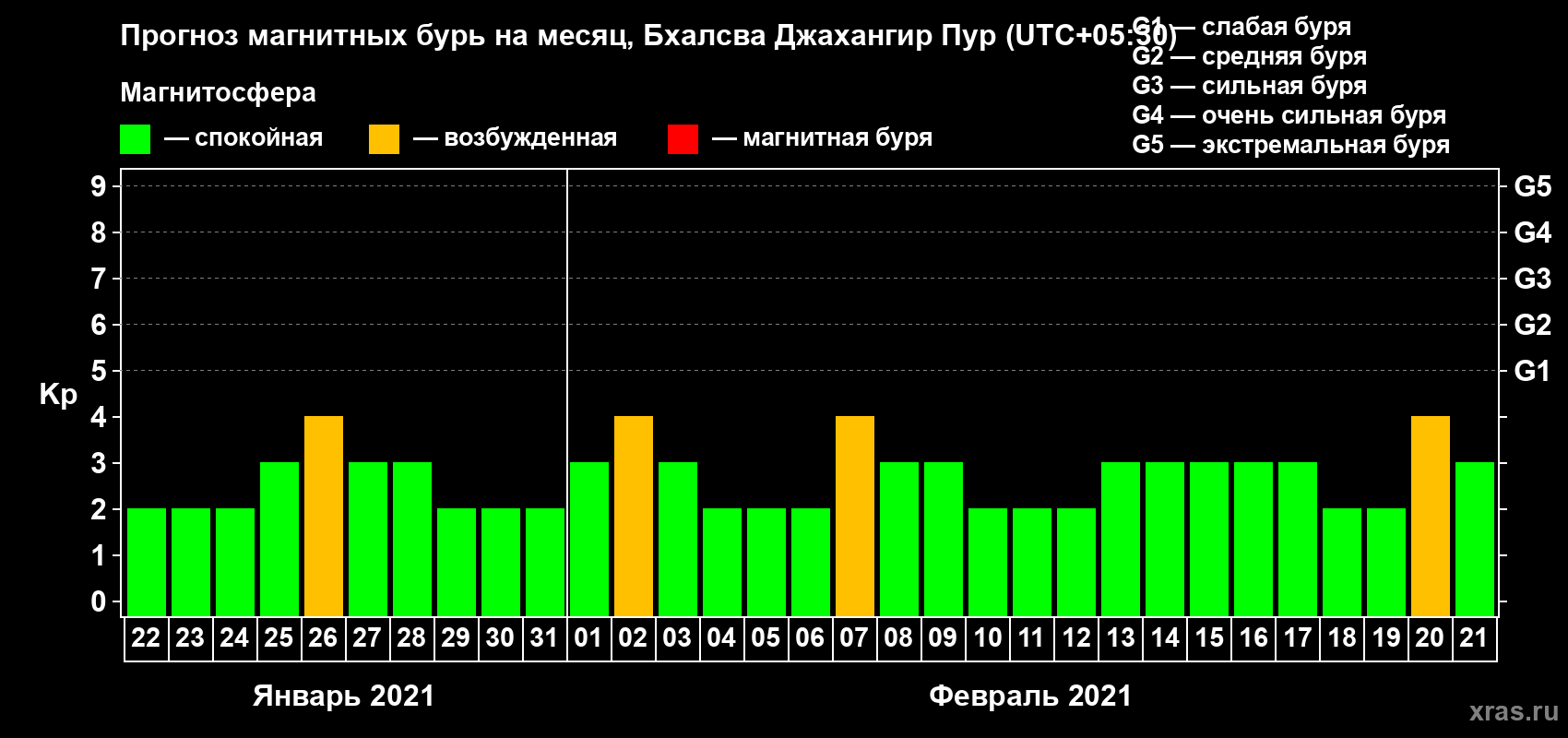 Прогноз магнитных бурь в Бхалсва Джахангир Пуре — 22 января 2021 года