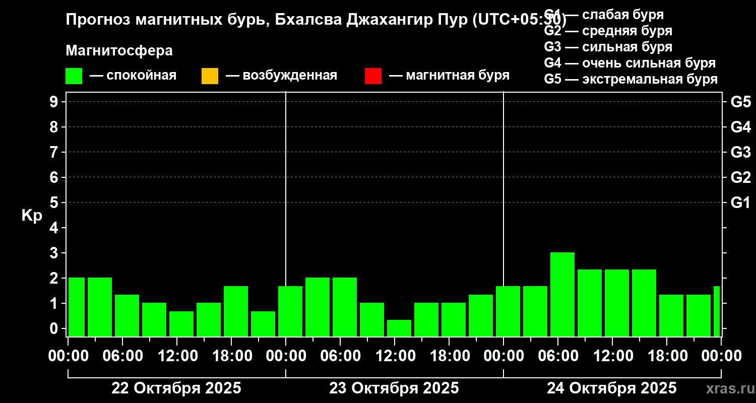 Прогноз магнитных бурь в Бхалсва Джахангир Пуре — 22 октября 2025 года