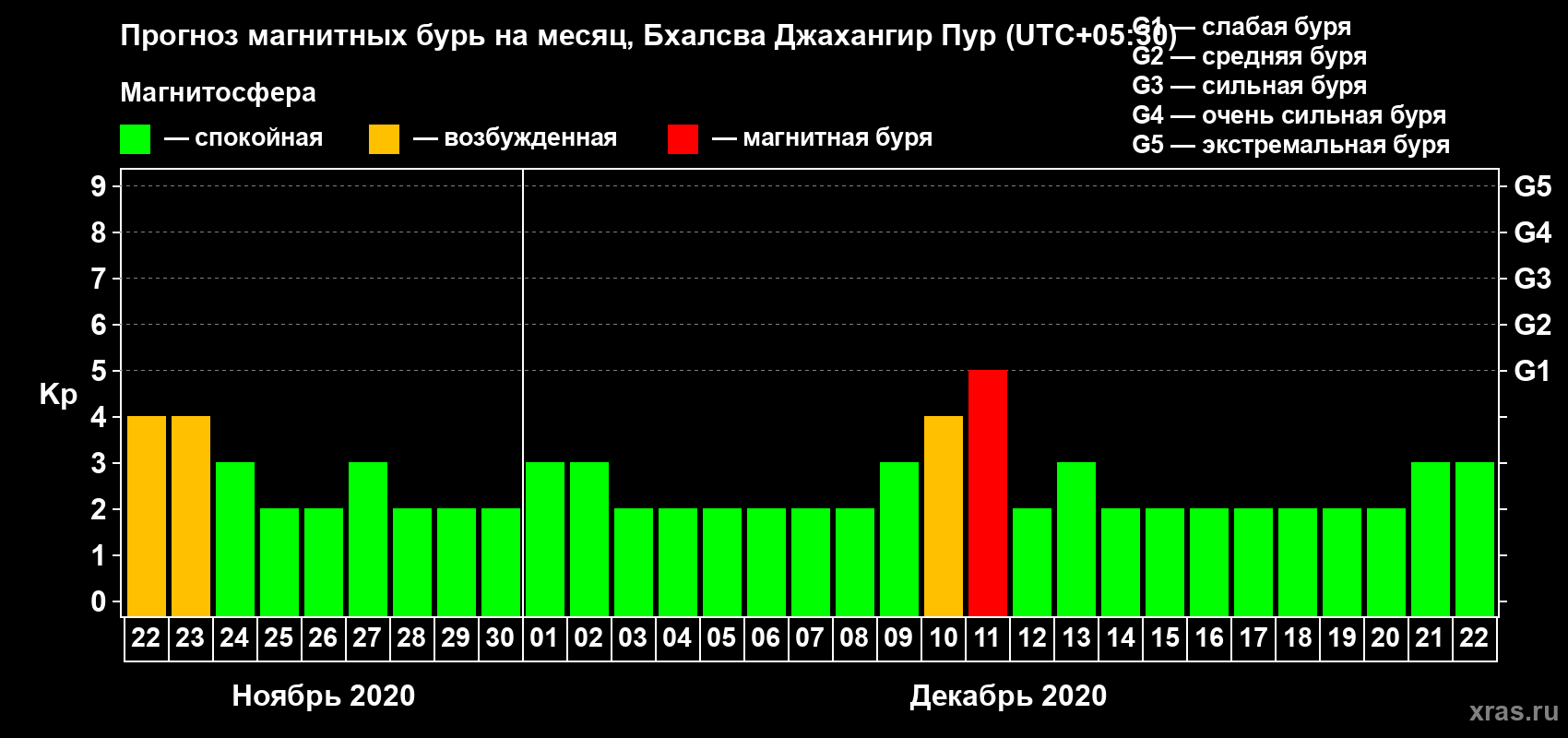 Прогноз магнитных бурь в Бхалсва Джахангир Пуре — 22 ноября 2020 года