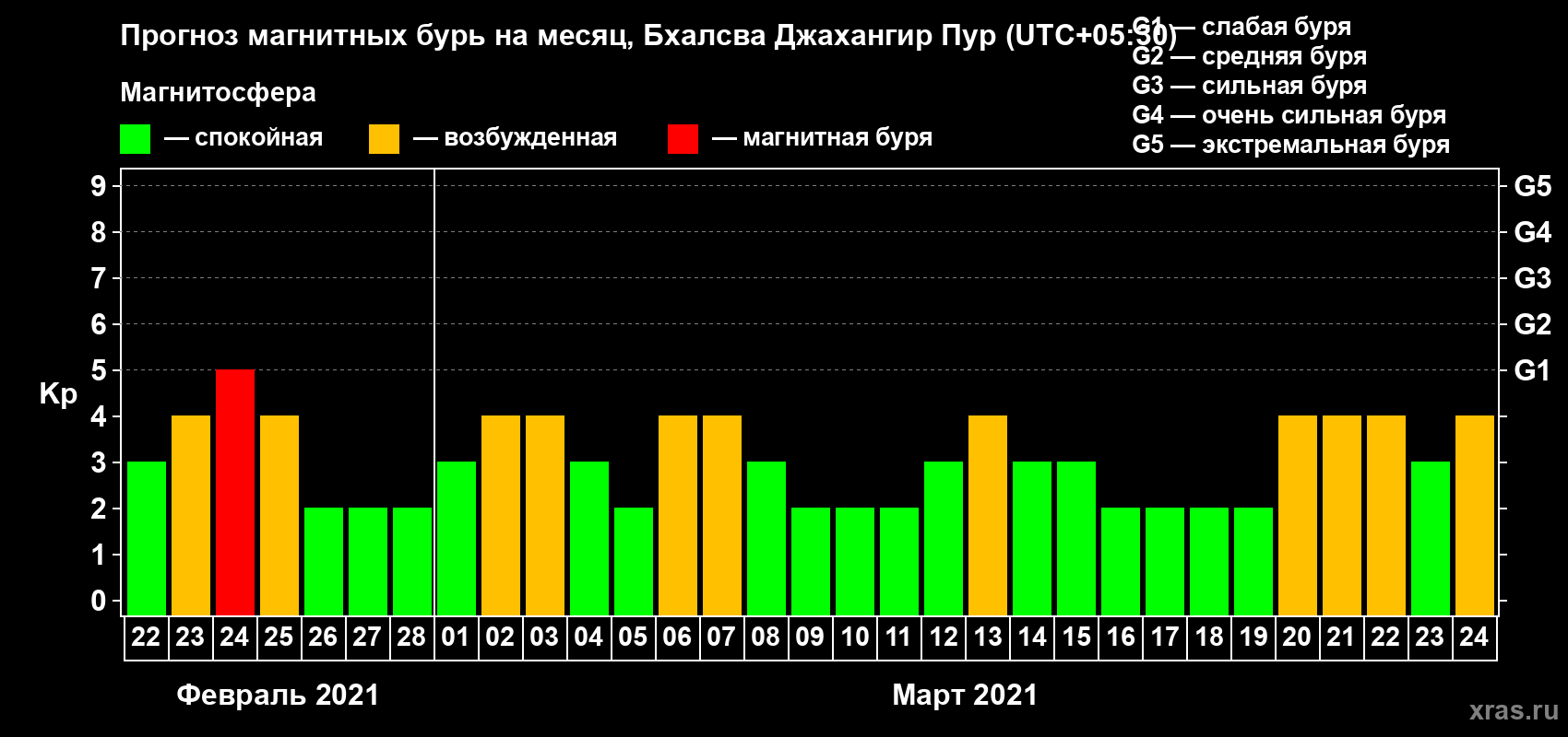 Прогноз магнитных бурь в Бхалсва Джахангир Пуре — 22 февраля 2021 года