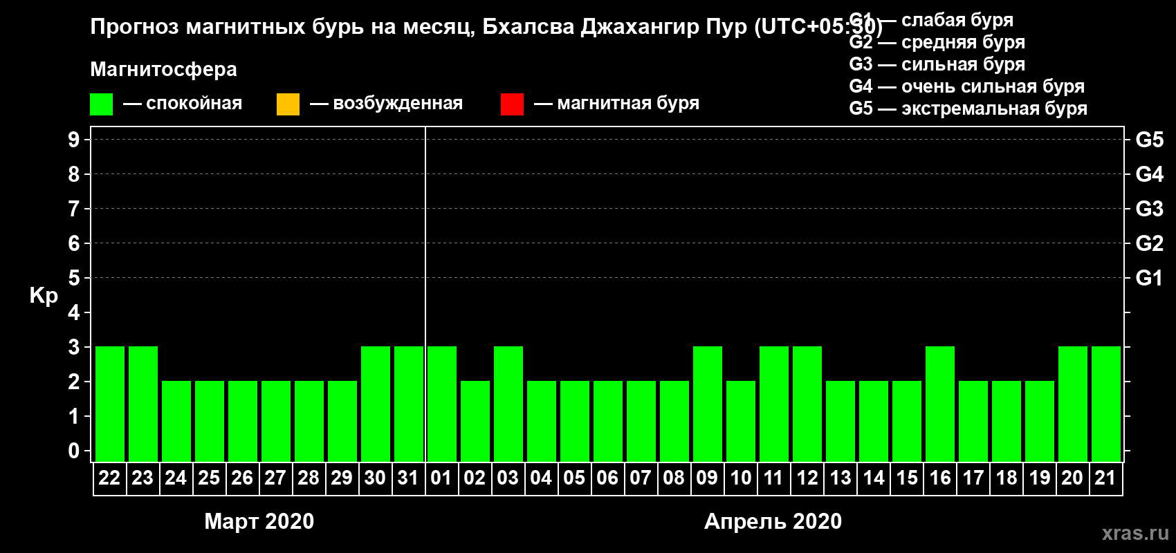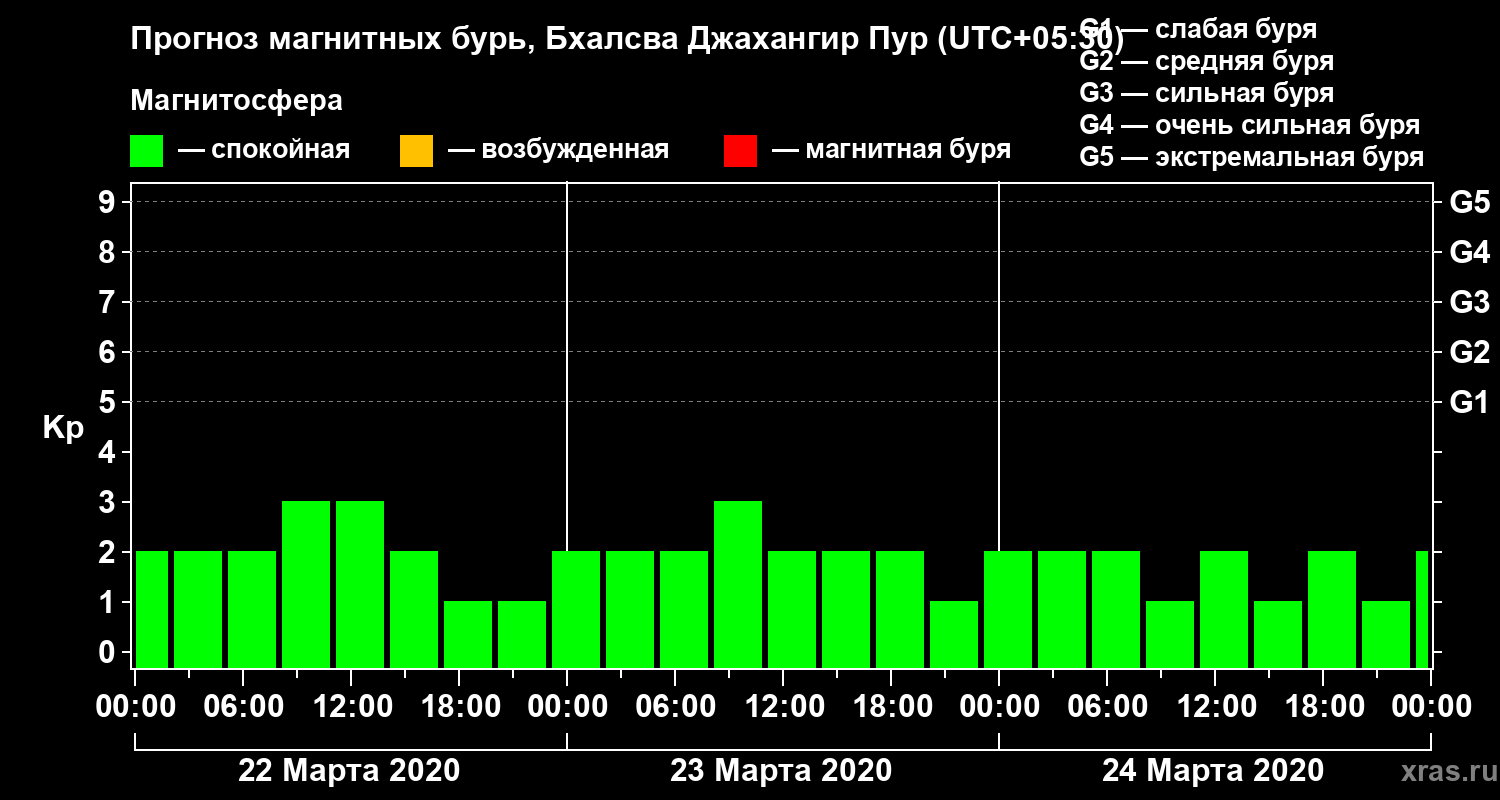 Прогноз магнитных бурь в Бхалсва Джахангир Пуре — 22 марта 2020 года