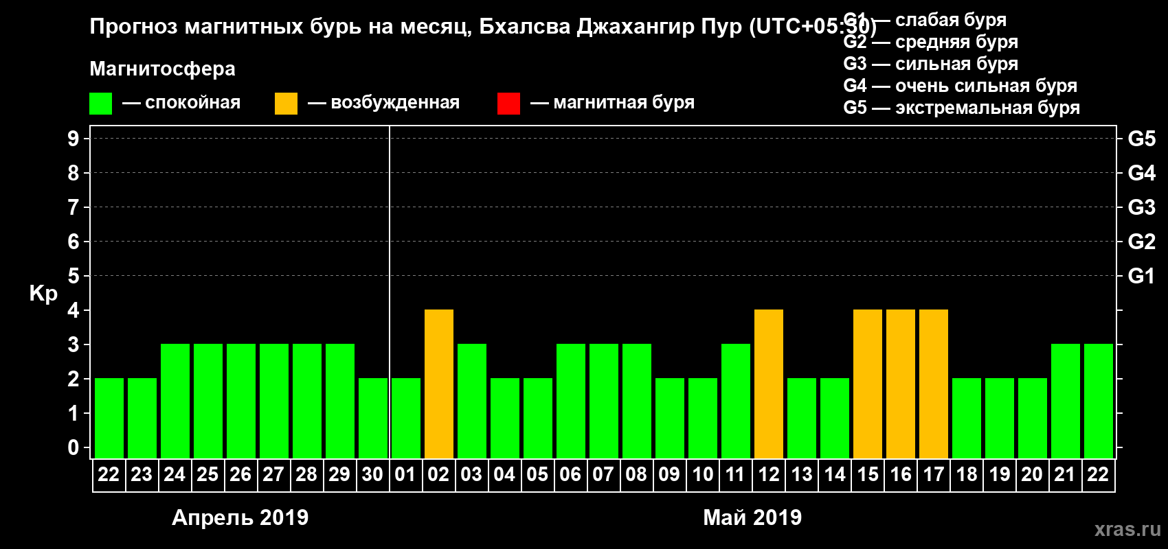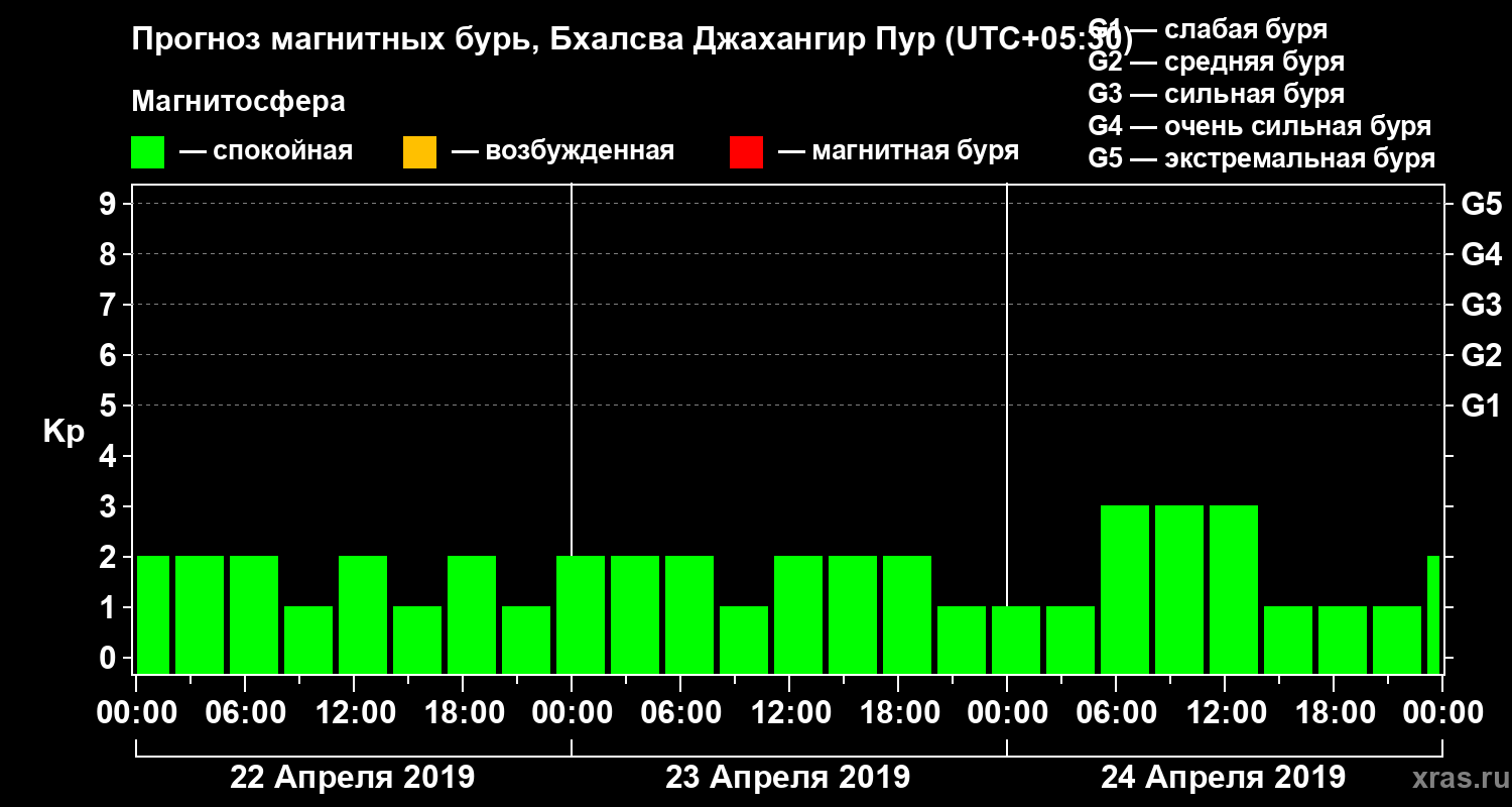 Прогноз магнитных бурь в Бхалсва Джахангир Пуре — 22 апреля 2019 года