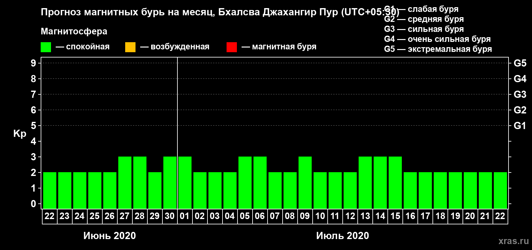 Прогноз магнитных бурь в Бхалсва Джахангир Пуре — 22 июня 2020 года