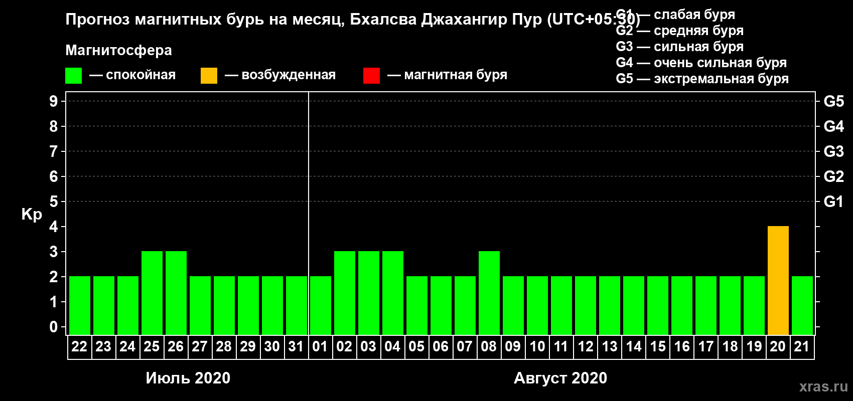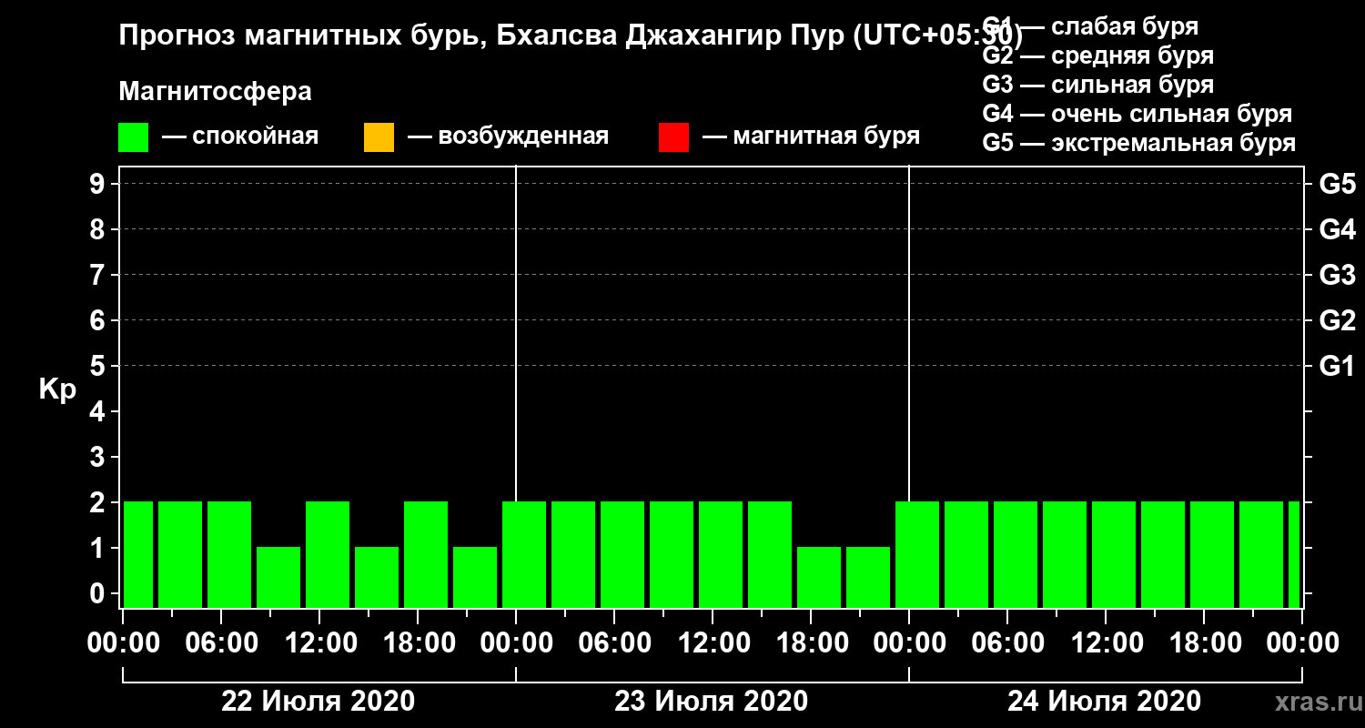 Прогноз магнитных бурь в Бхалсва Джахангир Пуре — 22 июля 2020 года
