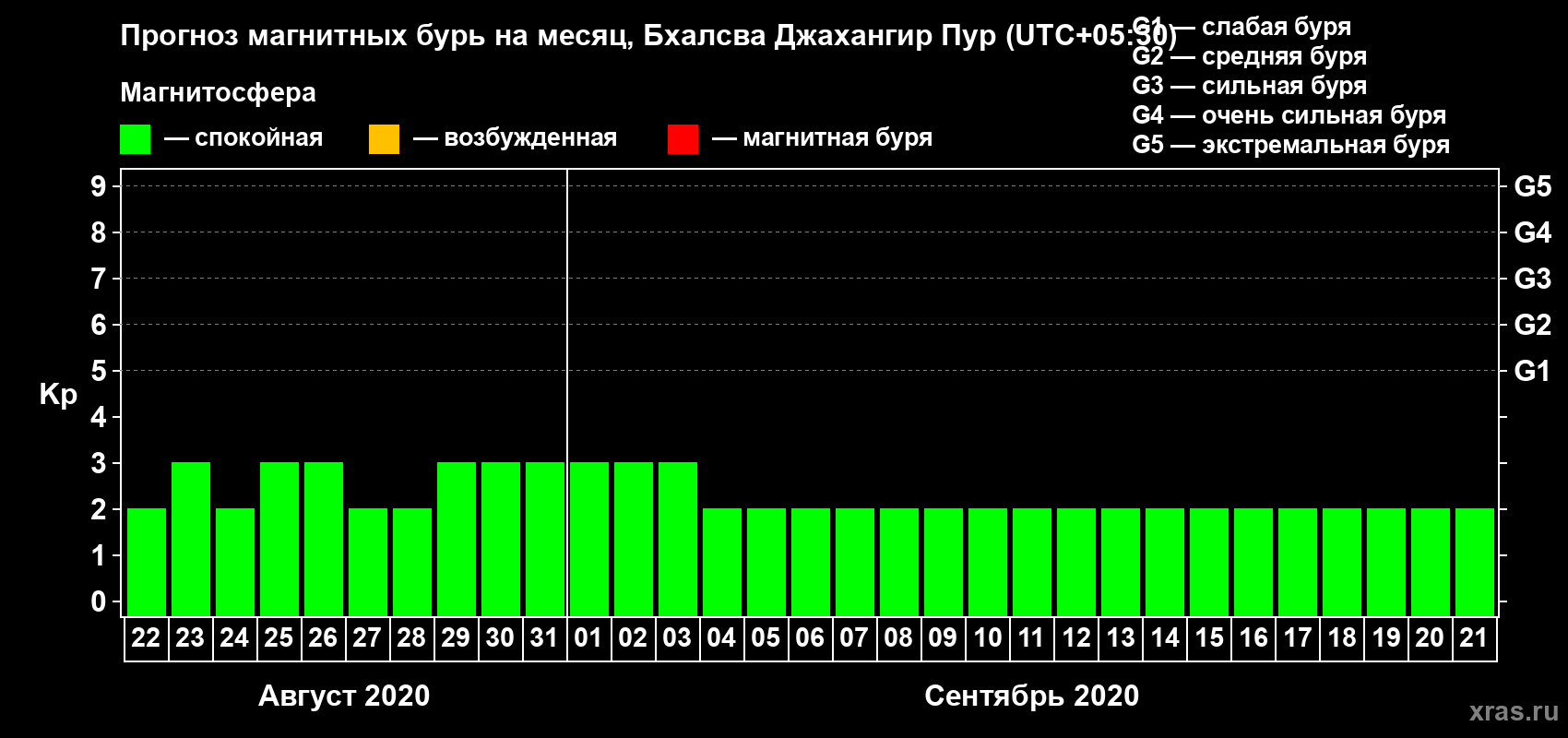 Прогноз магнитных бурь в Бхалсва Джахангир Пуре — 22 августа 2020 года