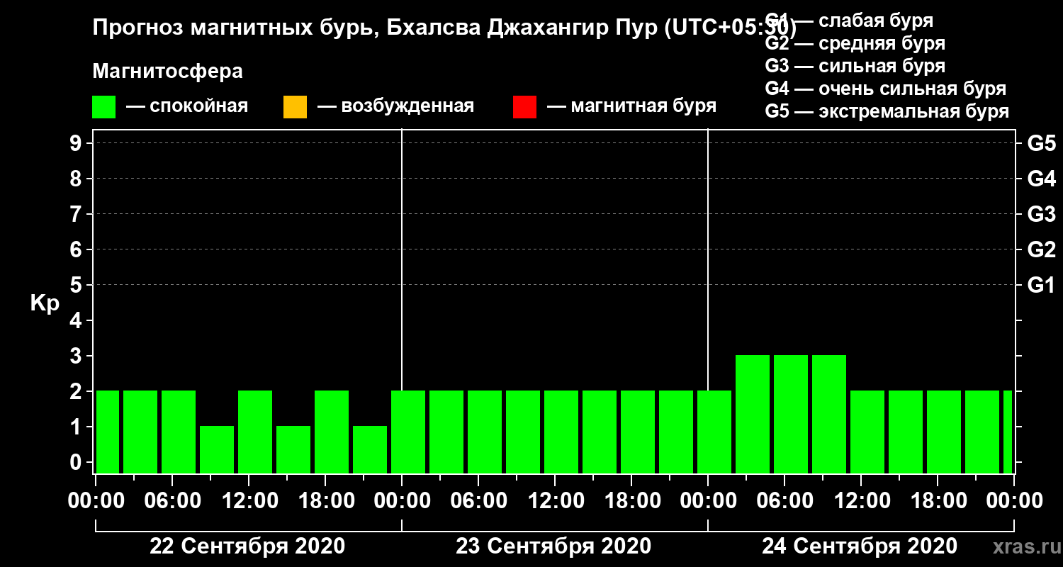 Прогноз магнитных бурь в Бхалсва Джахангир Пуре — 22 сентября 2020 года