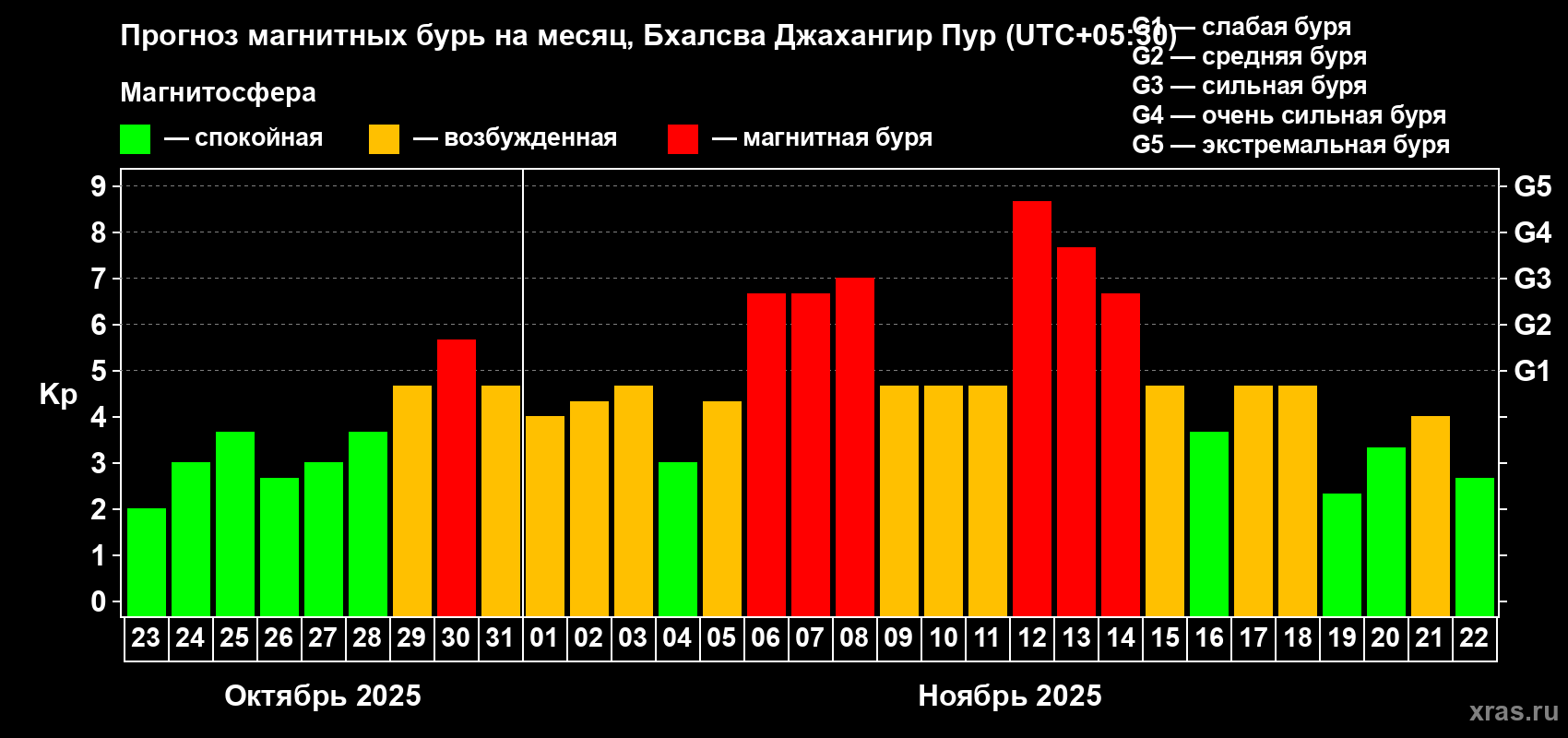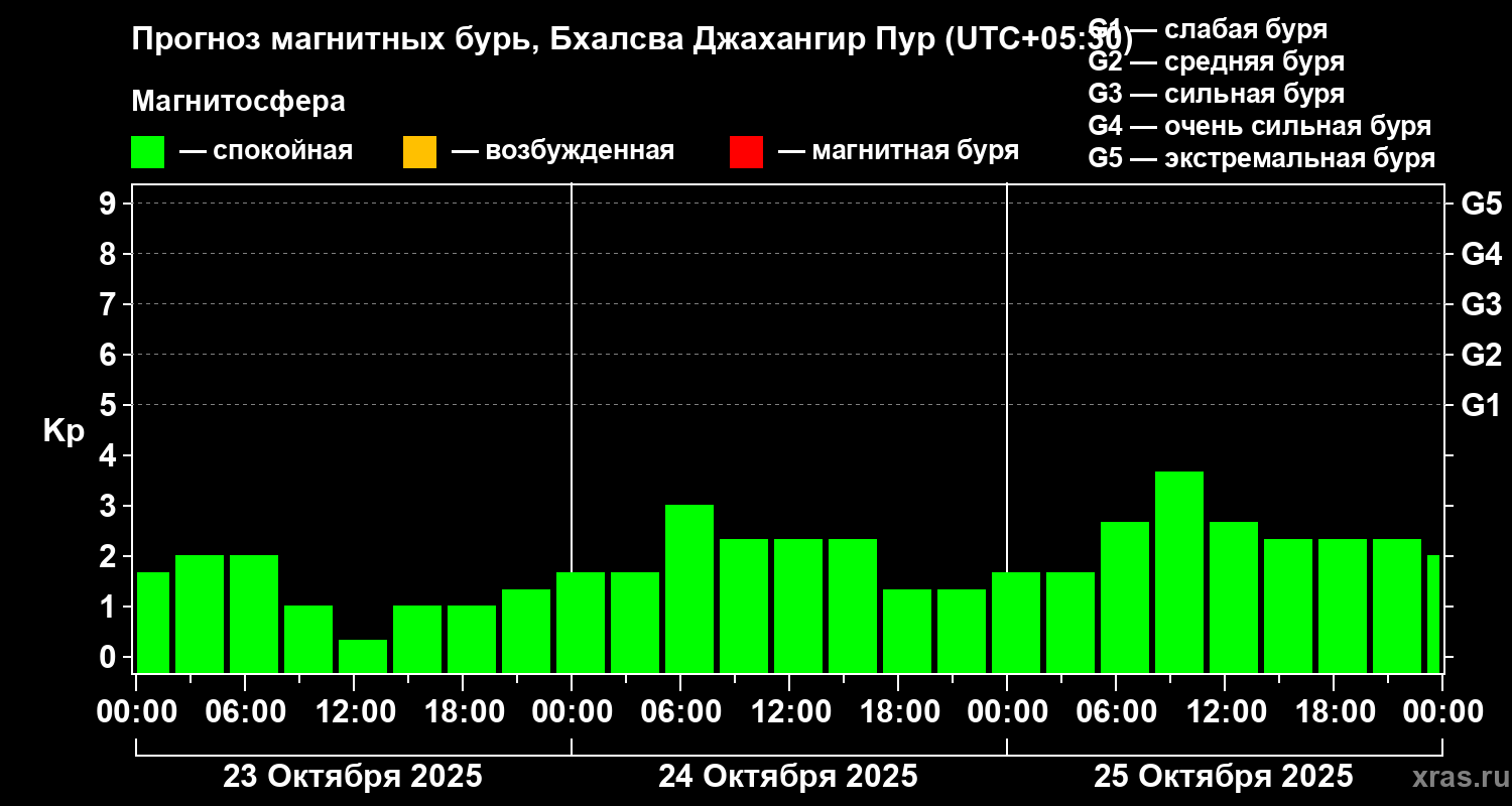 Прогноз магнитных бурь в Бхалсва Джахангир Пуре — 23 октября 2025 года