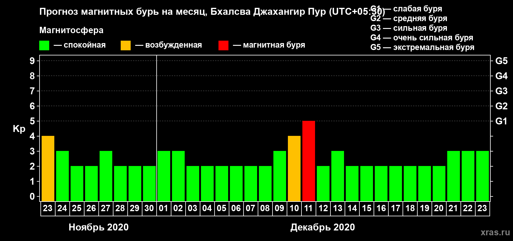 Прогноз магнитных бурь в Бхалсва Джахангир Пуре — 23 ноября 2020 года