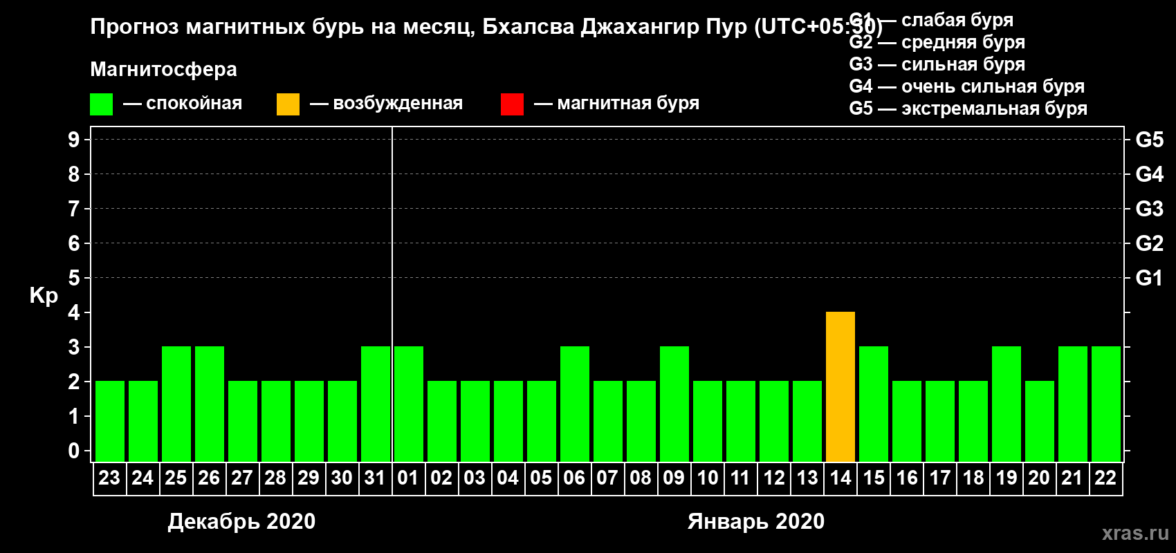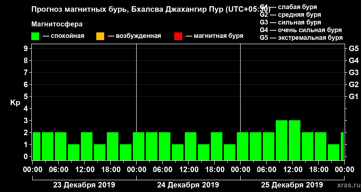 Прогноз магнитных бурь в Бхалсва Джахангир Пуре — 23 декабря 2019 года