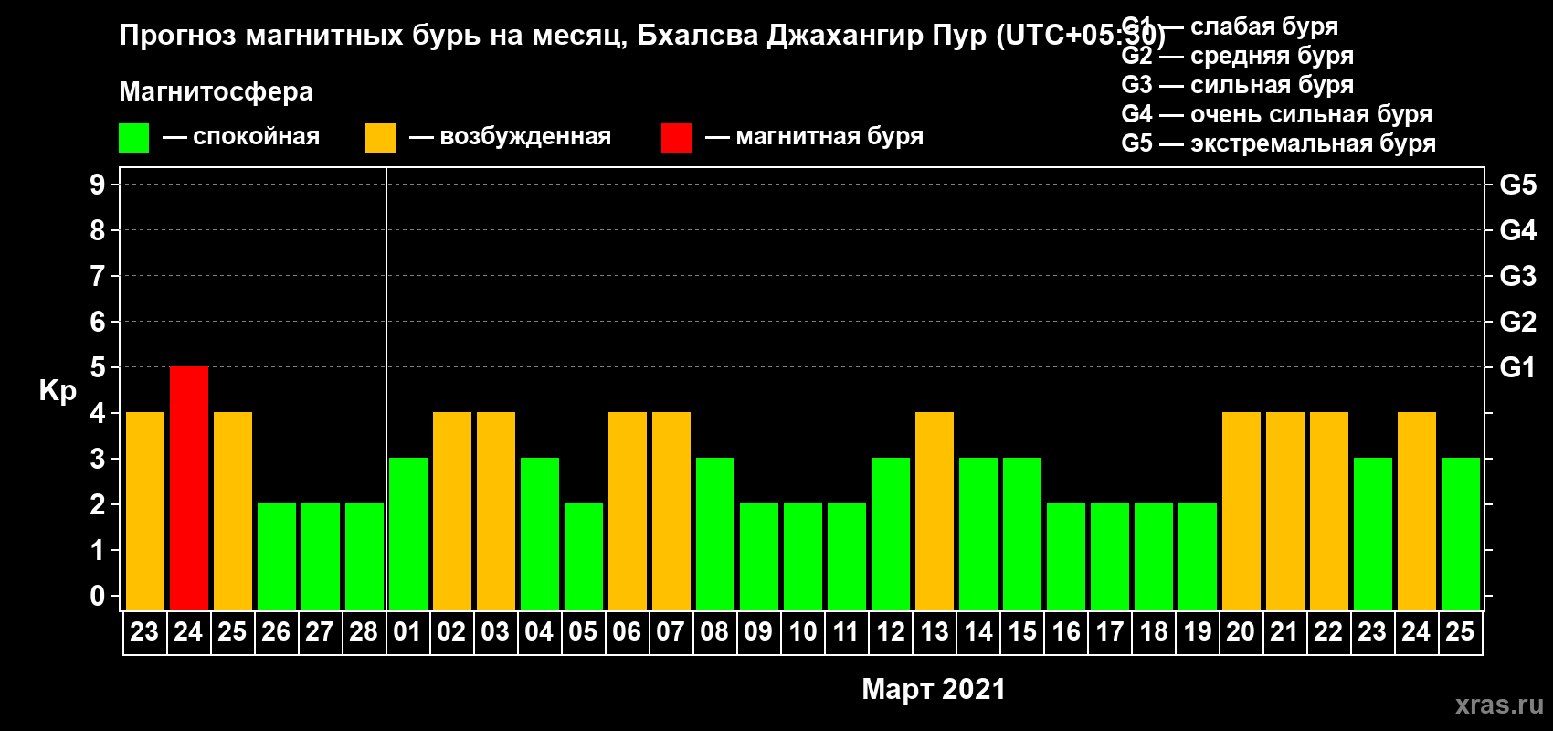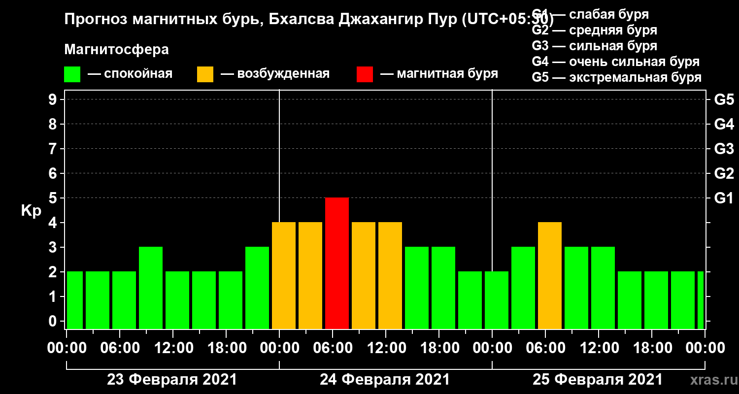 Прогноз магнитных бурь в Бхалсва Джахангир Пуре — 23 февраля 2021 года