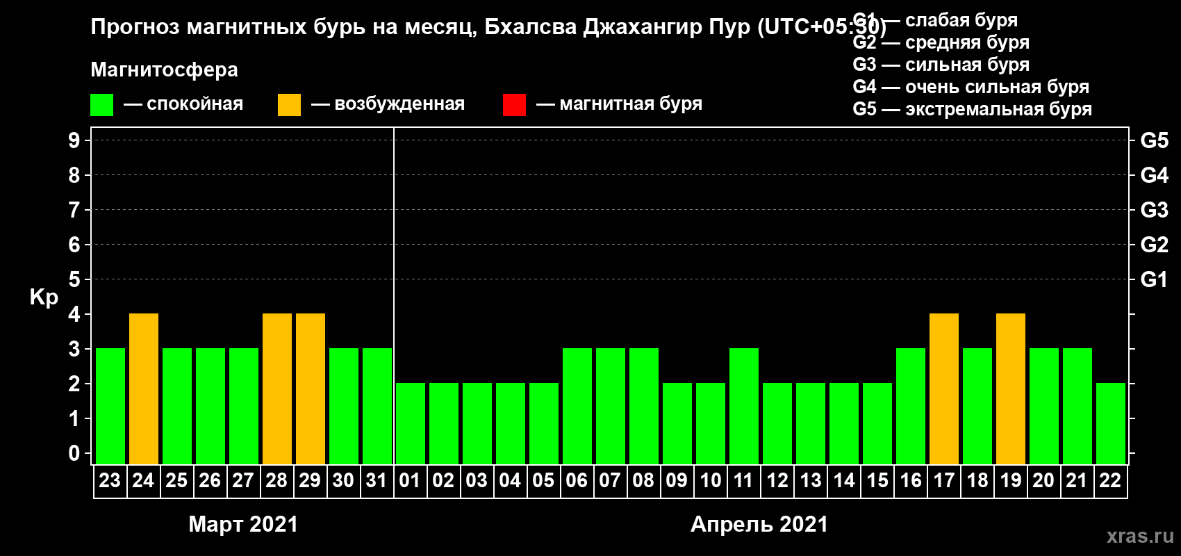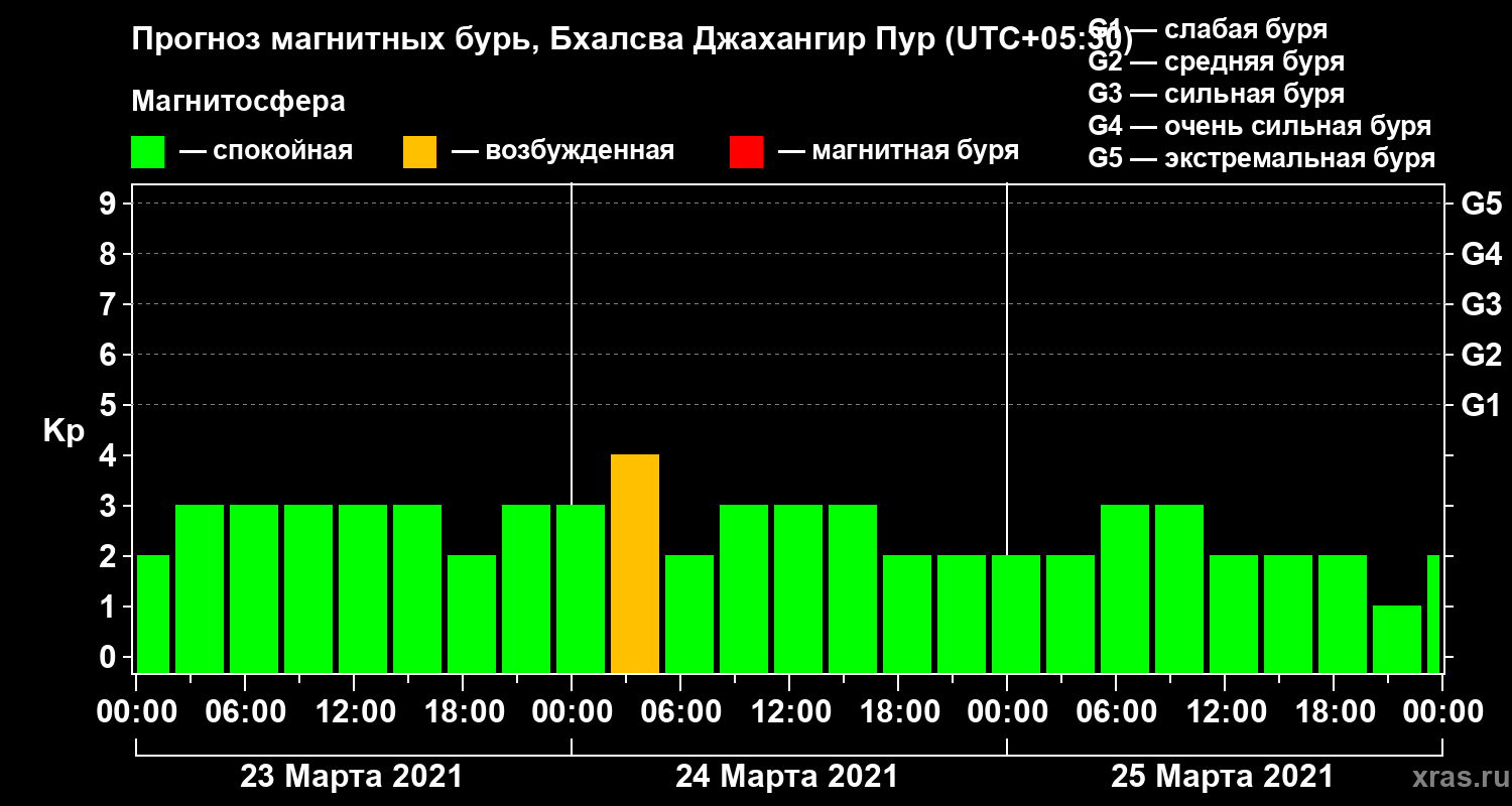 Прогноз магнитных бурь в Бхалсва Джахангир Пуре — 23 марта 2021 года
