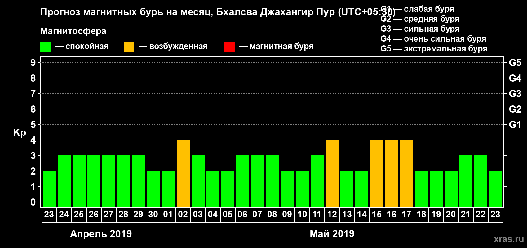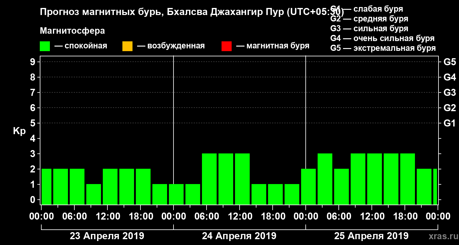 Прогноз магнитных бурь в Бхалсва Джахангир Пуре — 23 апреля 2019 года