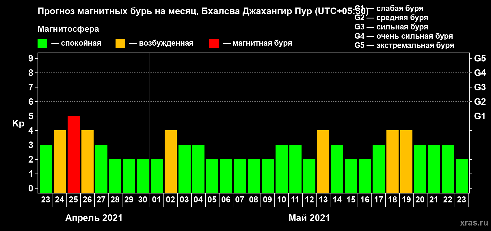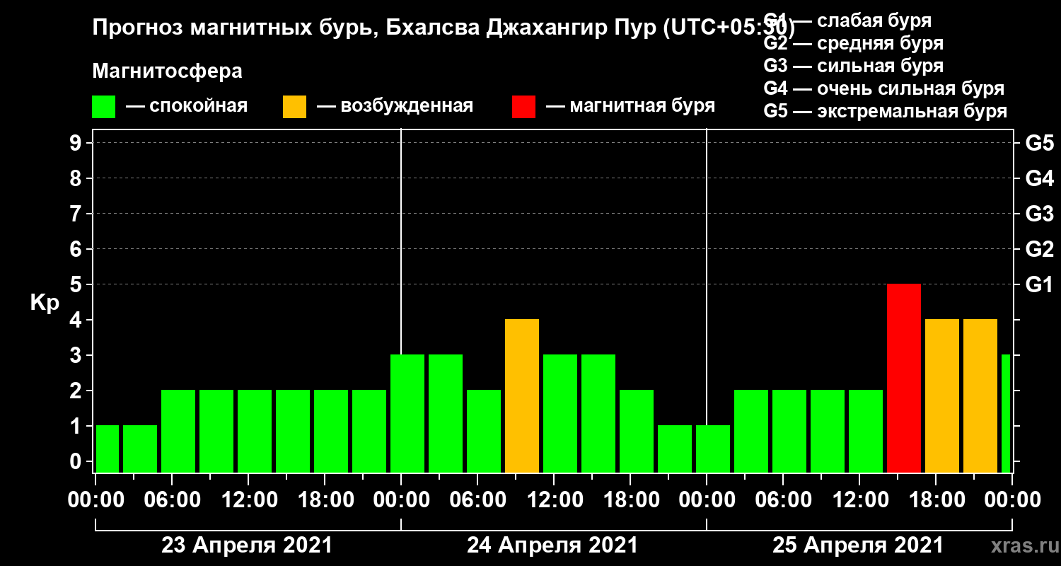 Прогноз магнитных бурь в Бхалсва Джахангир Пуре — 23 апреля 2021 года