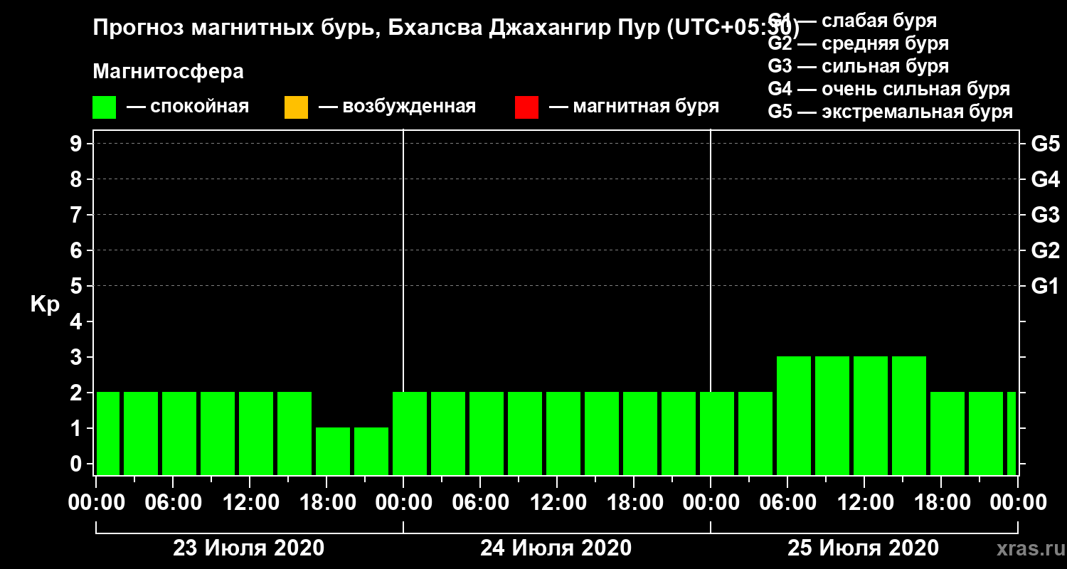 Прогноз магнитных бурь в Бхалсва Джахангир Пуре — 23 июля 2020 года