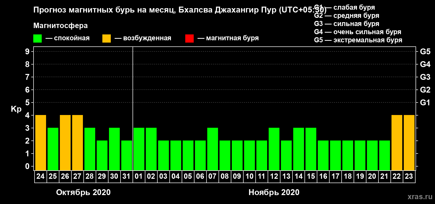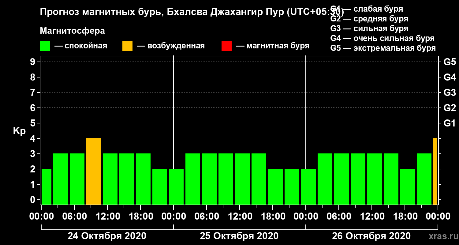 Прогноз магнитных бурь в Бхалсва Джахангир Пуре — 24 октября 2020 года