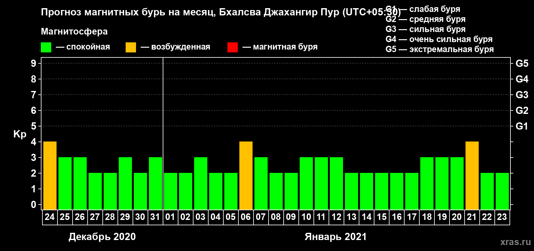 Прогноз магнитных бурь в Бхалсва Джахангир Пуре — 24 декабря 2020 года