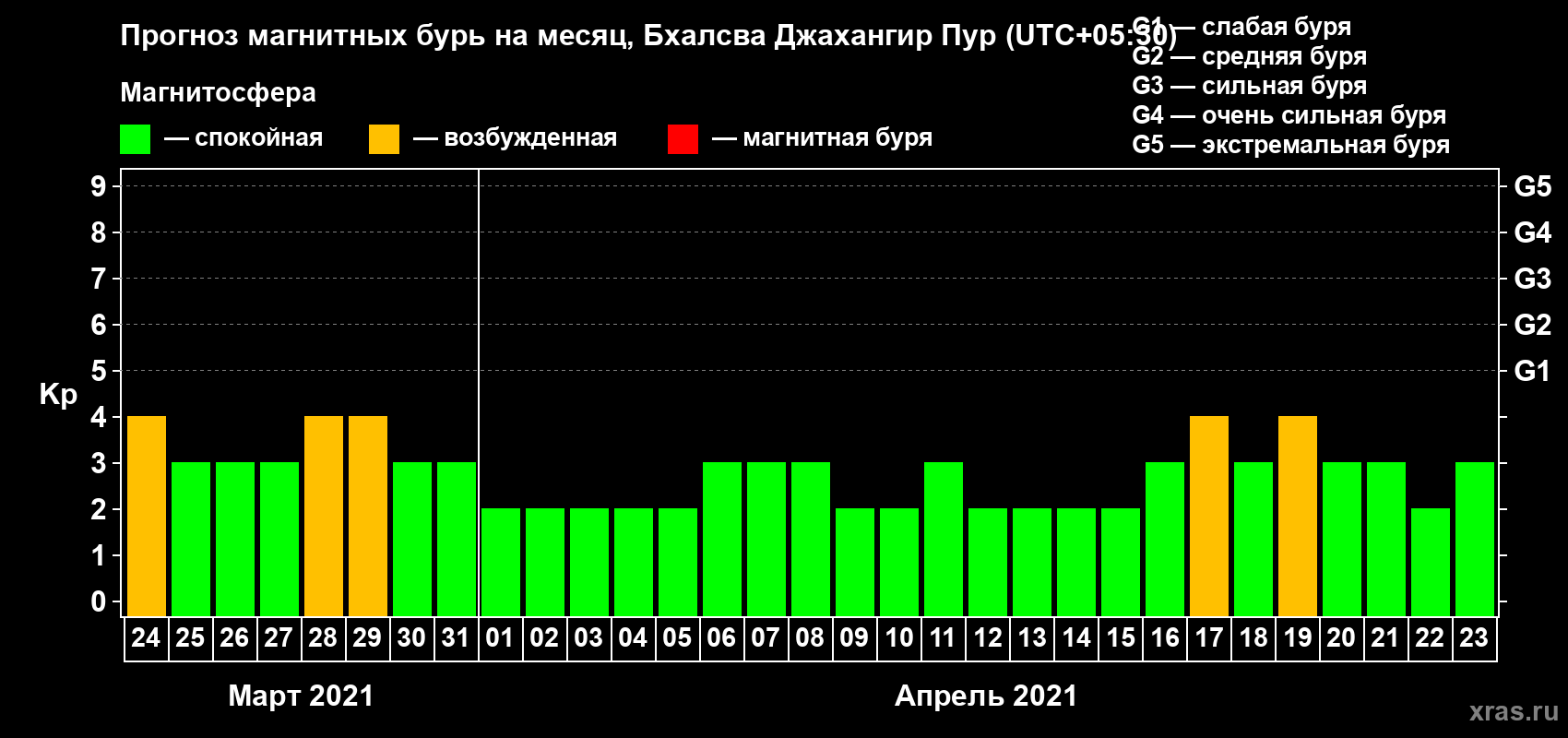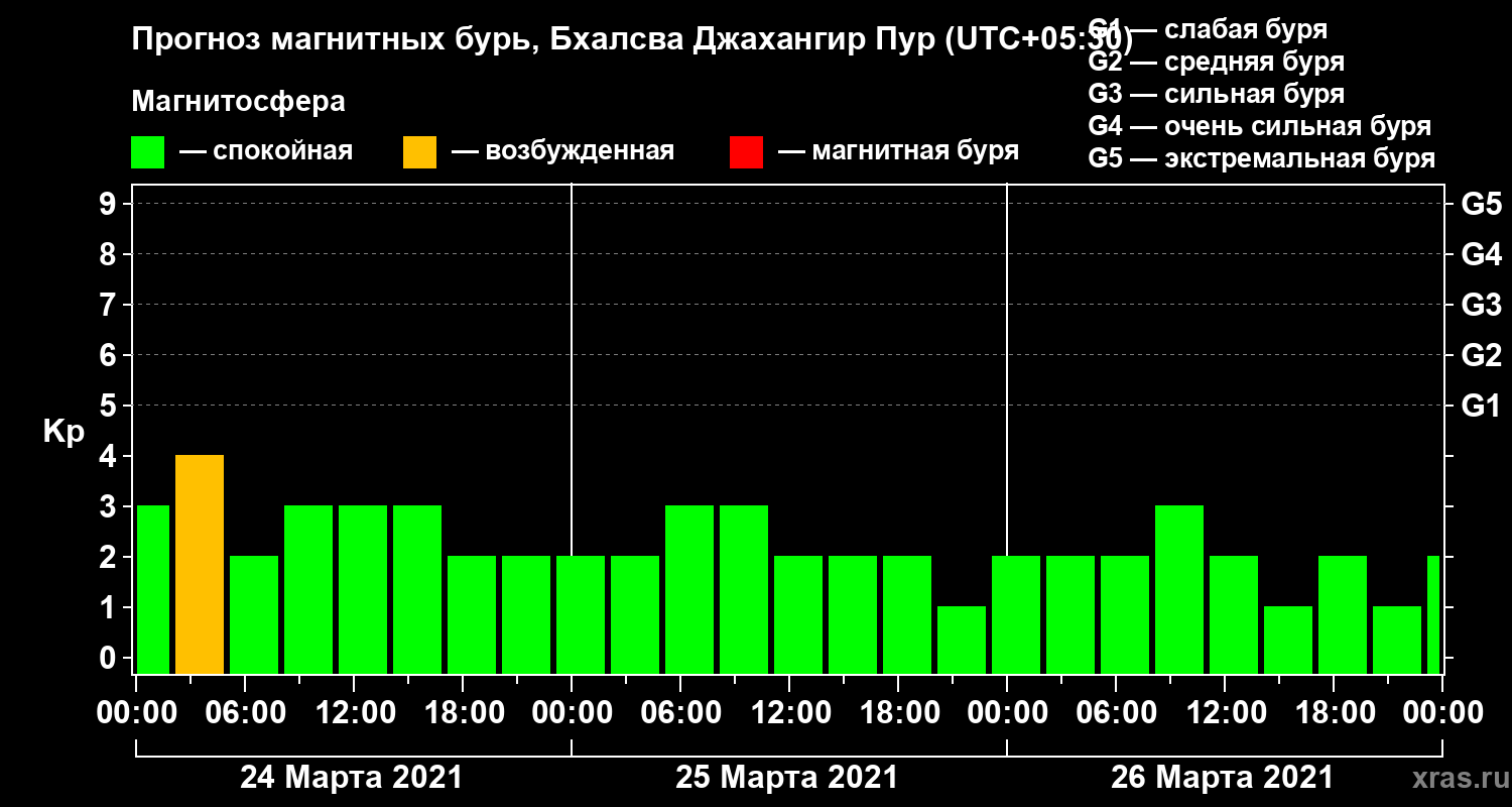 Прогноз магнитных бурь в Бхалсва Джахангир Пуре — 24 марта 2021 года