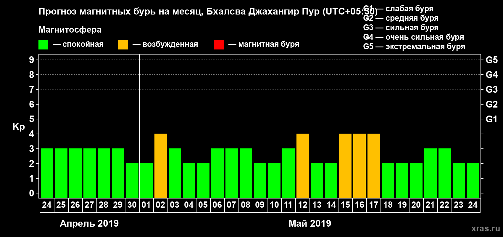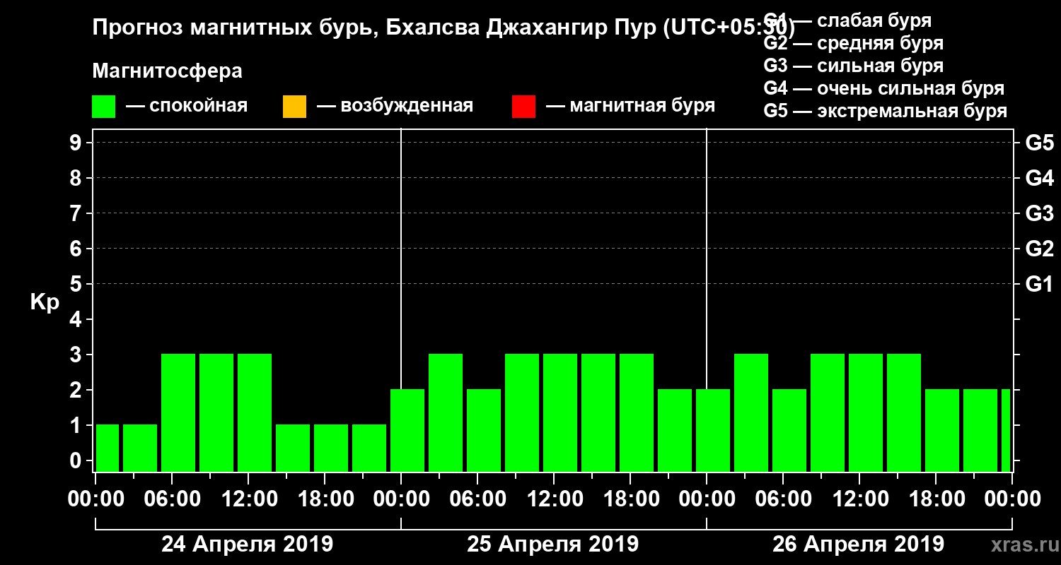Прогноз магнитных бурь в Бхалсва Джахангир Пуре — 24 апреля 2019 года