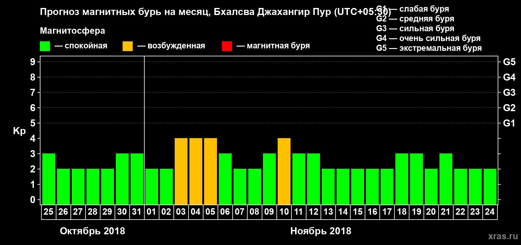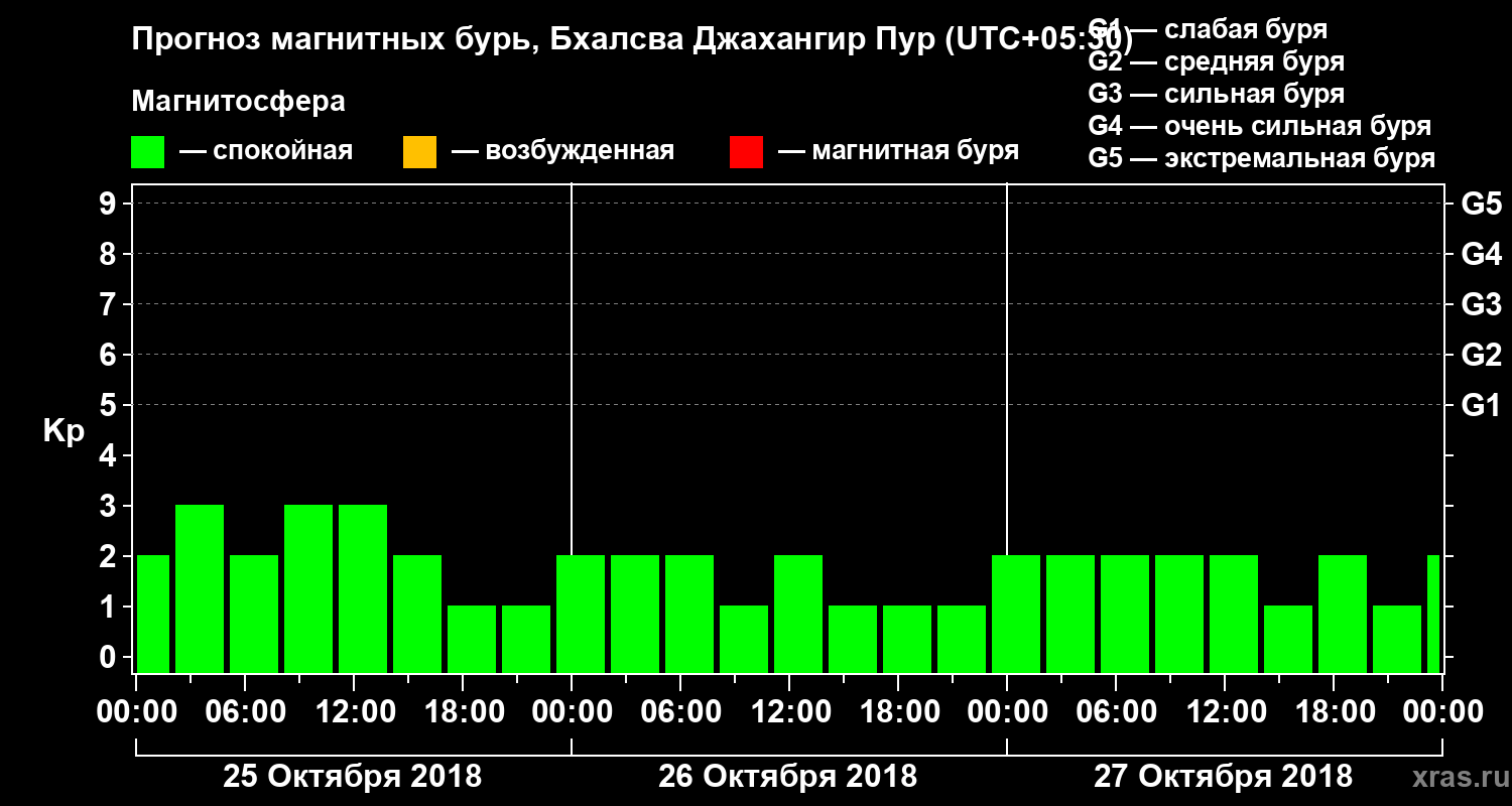 Прогноз магнитных бурь в Бхалсва Джахангир Пуре — 25 октября 2018 года