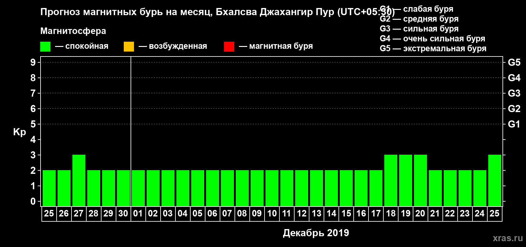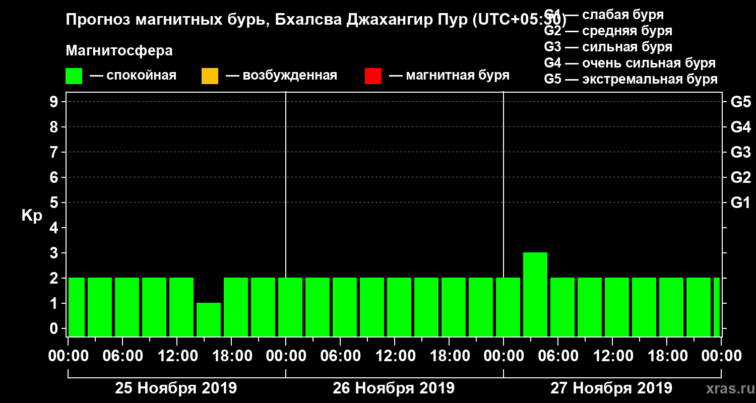Прогноз магнитных бурь в Бхалсва Джахангир Пуре — 25 ноября 2019 года