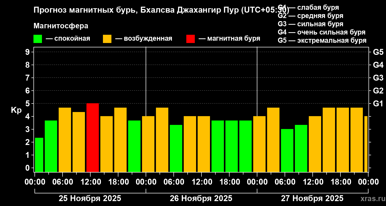Прогноз магнитных бурь в Бхалсва Джахангир Пуре — 25 ноября 2025 года