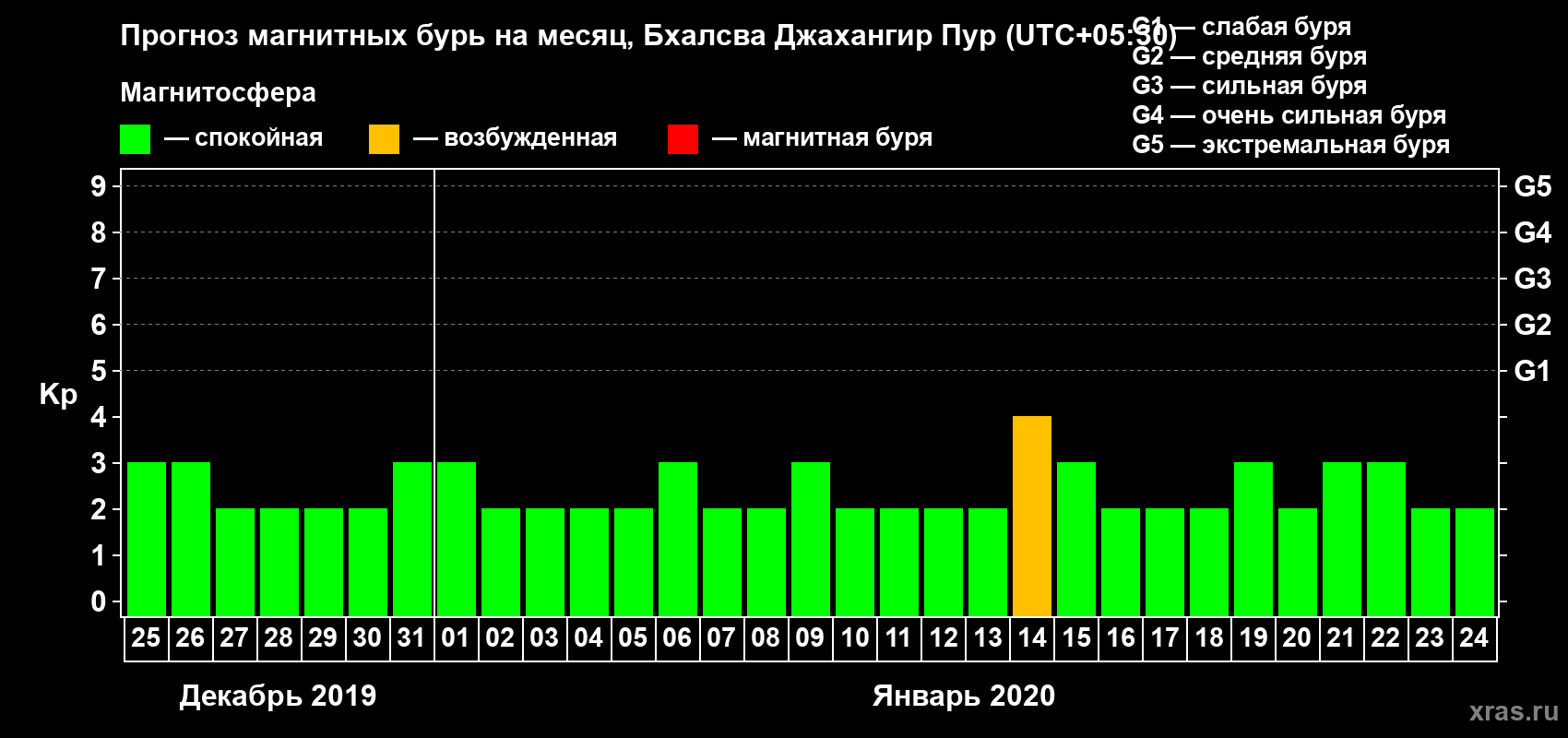 Прогноз магнитных бурь в Бхалсва Джахангир Пуре — 25 декабря 2019 года