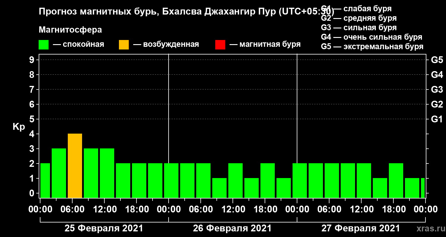 Прогноз магнитных бурь в Бхалсва Джахангир Пуре — 25 февраля 2021 года