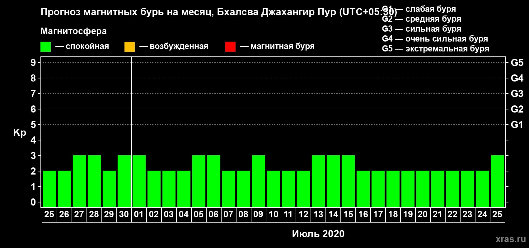 Прогноз магнитных бурь в Бхалсва Джахангир Пуре — 25 июня 2020 года