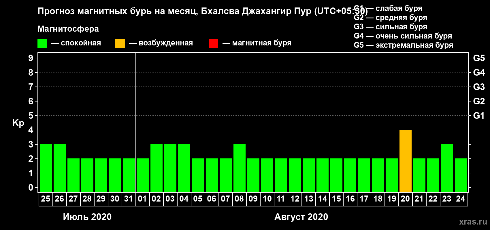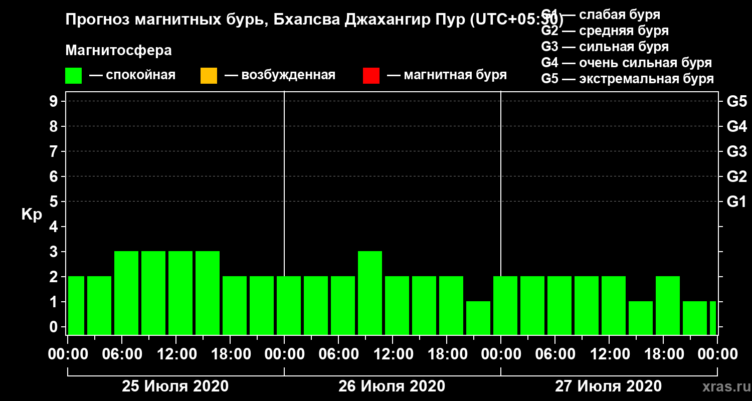 Прогноз магнитных бурь в Бхалсва Джахангир Пуре — 25 июля 2020 года