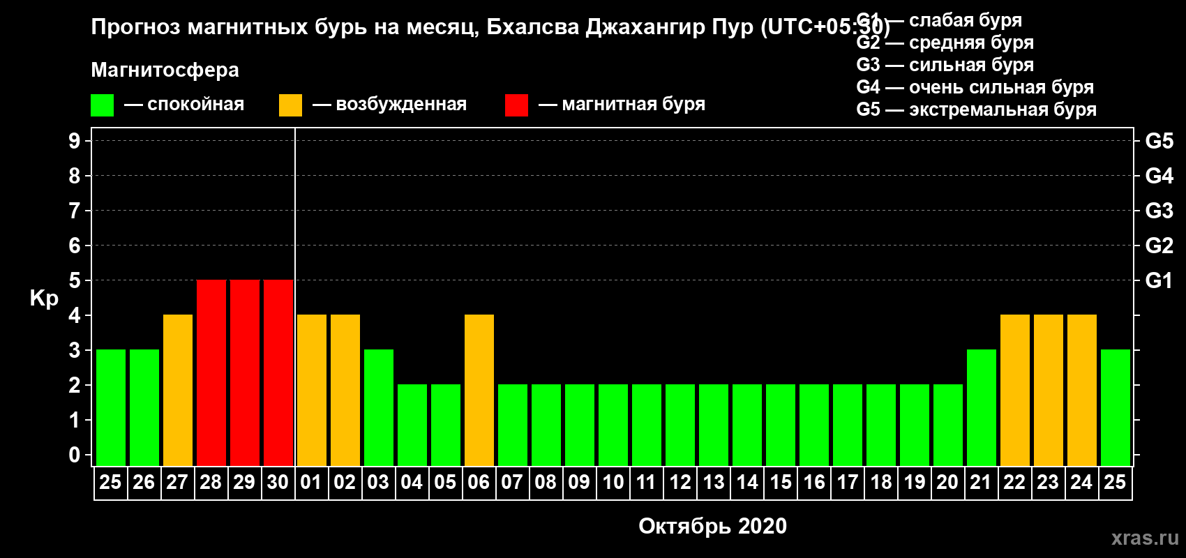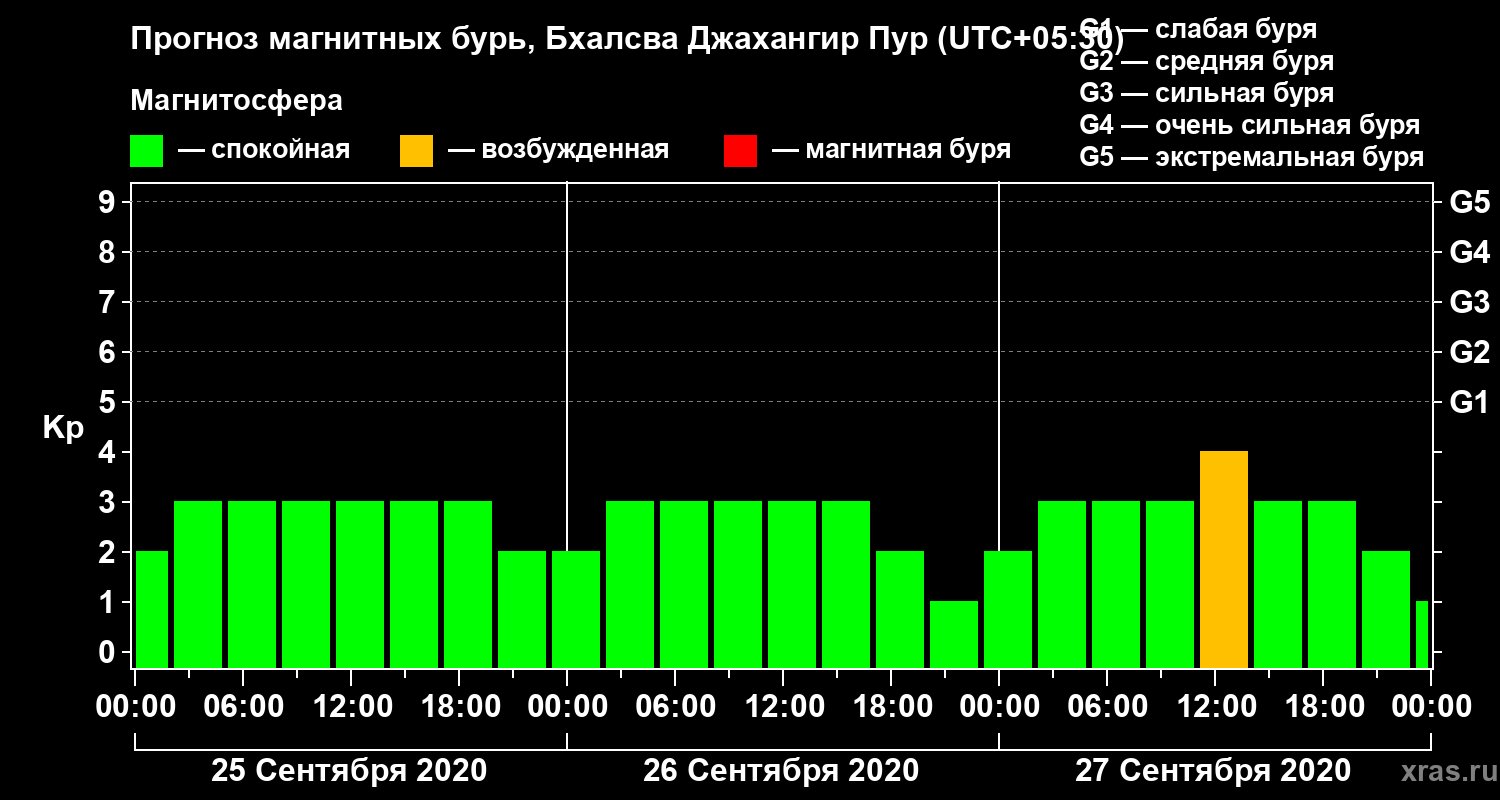 Прогноз магнитных бурь в Бхалсва Джахангир Пуре — 25 сентября 2020 года