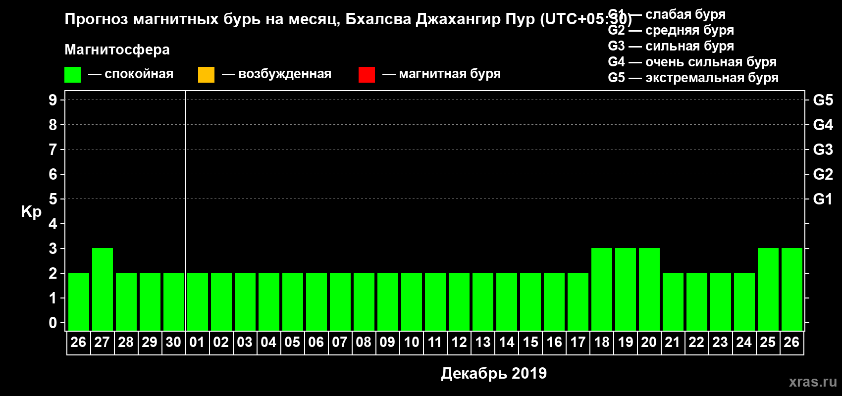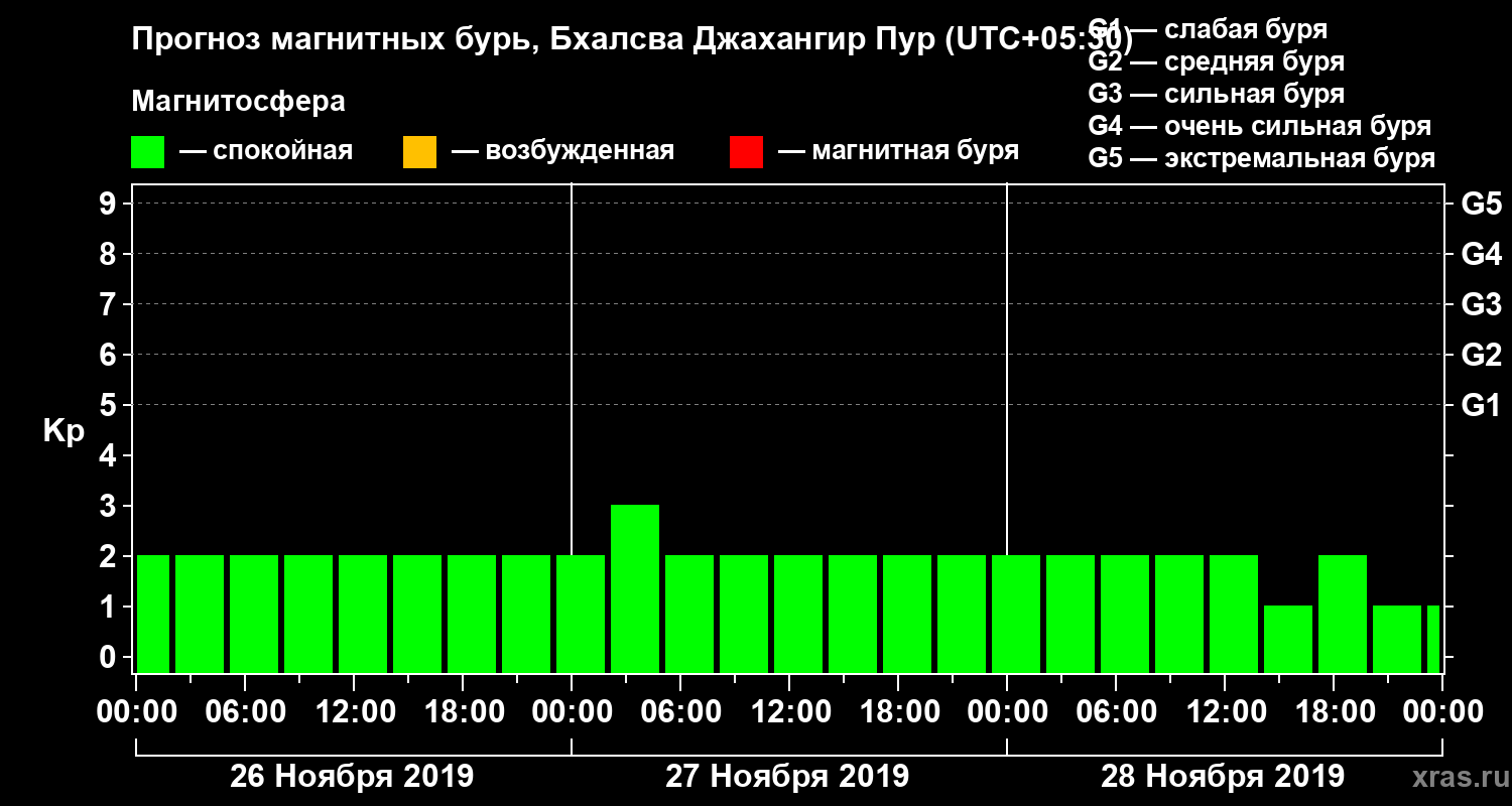 Прогноз магнитных бурь в Бхалсва Джахангир Пуре — 26 ноября 2019 года