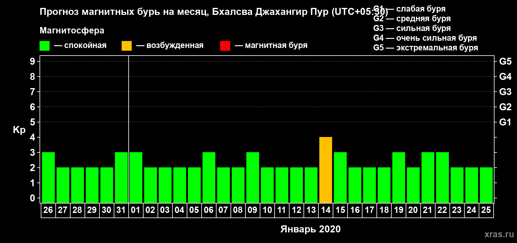 Прогноз магнитных бурь в Бхалсва Джахангир Пуре — 26 декабря 2019 года